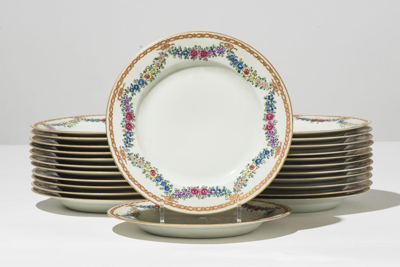 3169. 24 assiettes à dîner de style Compagnie des Indes à décor de guirlandes de fleurs
