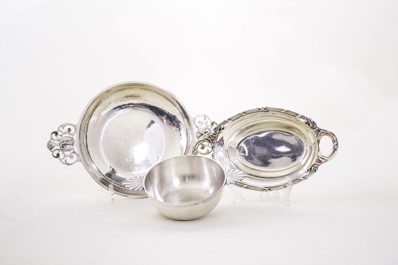 3416. 2 coupelles l'une à motif de ruban croisé, l'autre repoussé de f...