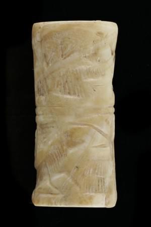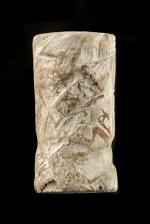 75. 4 sceaux-cylindres, marbre, coquillage, calcaire et cristal de r...