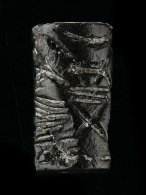 67. Sceau cylindre, schiste vert, Uruk récent, 3300-3000 av. JC