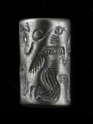 136. Sceau-cylindre, hématite, paléo-babylonien, 2000-1600 av. JC