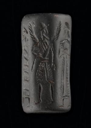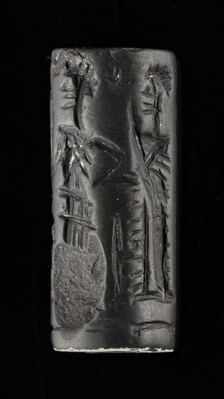 144. 3 sceaux-cylindres, marbre noir et hématite, paléo-babylonien, 2000-1600 av. JC