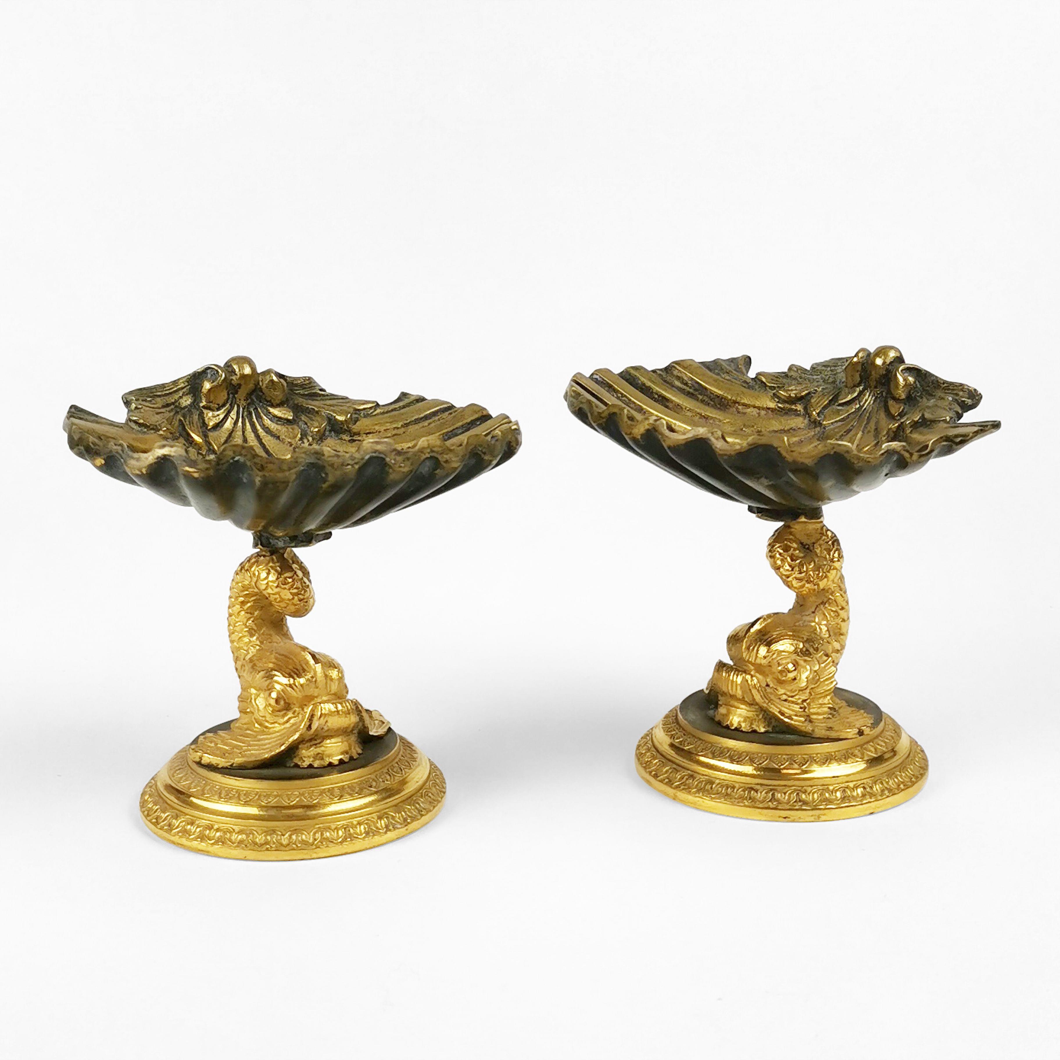 3021. Paire de vide- poches, en forme de coquillages soutenus par des tritons