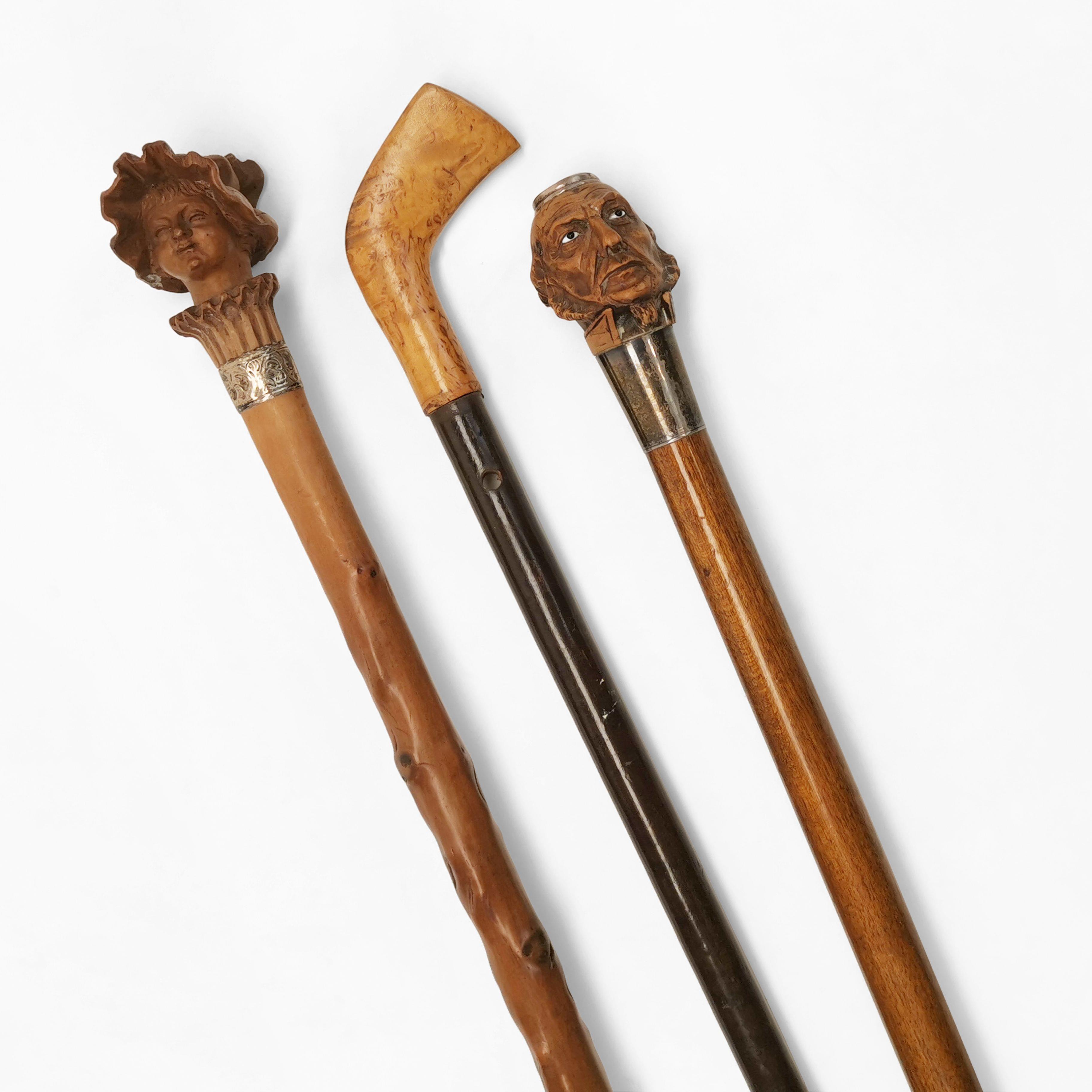 Bois, deux à motif de tête, L de 90 à 92 cm