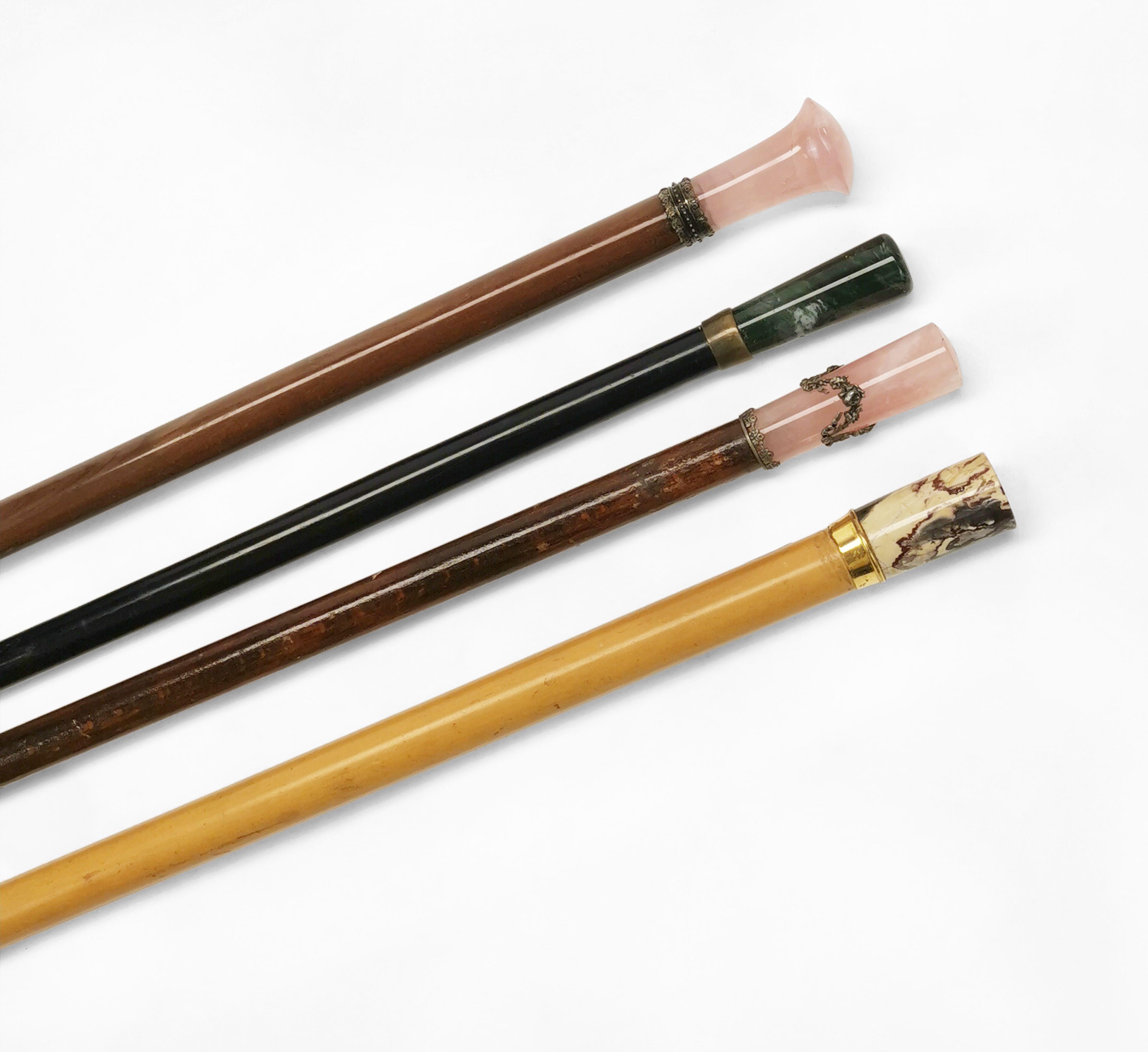 3047. Quatre cannes à motif de buste, trophée et animaux
