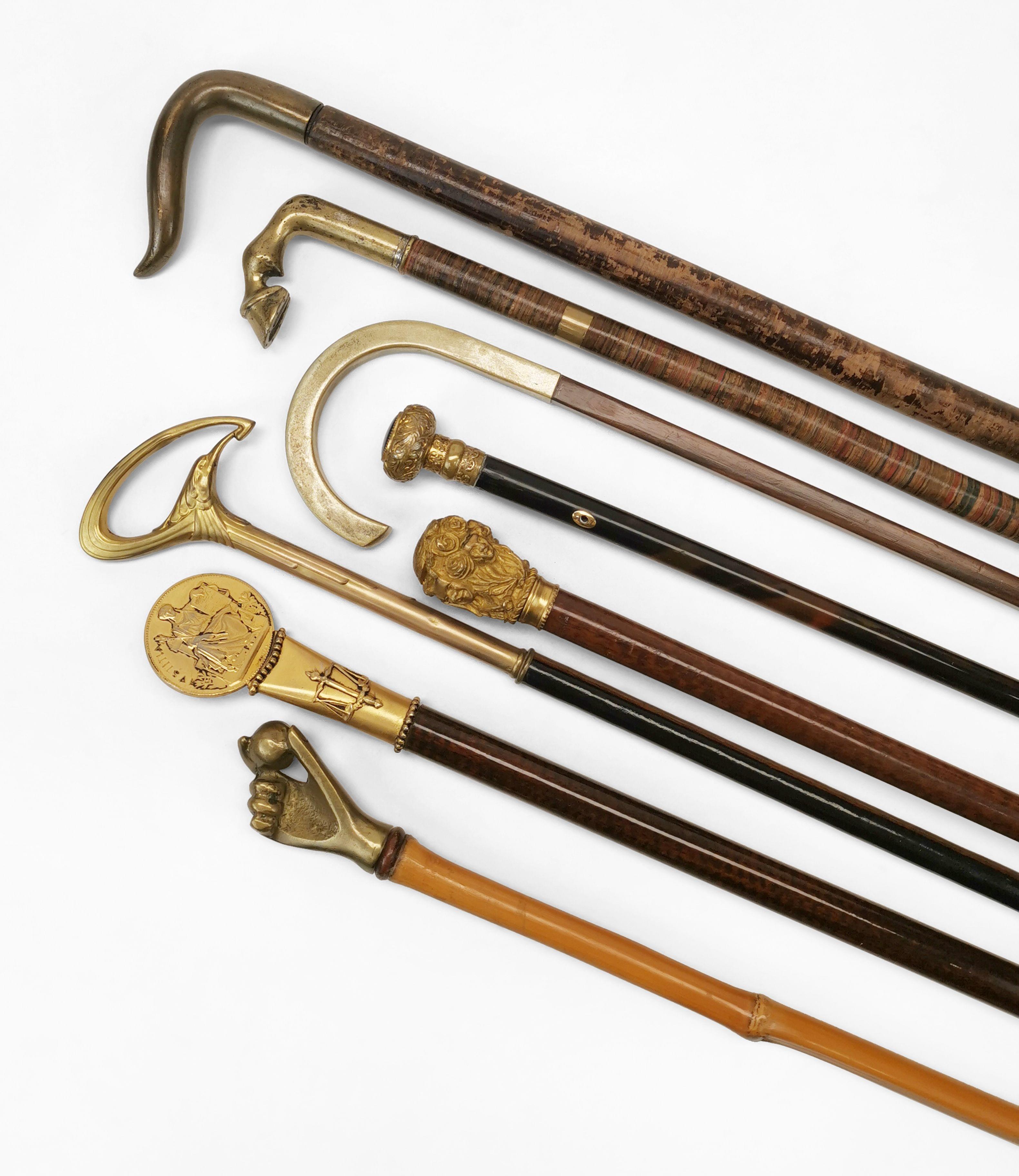 3047. Quatre cannes à motif de buste, trophée et animaux