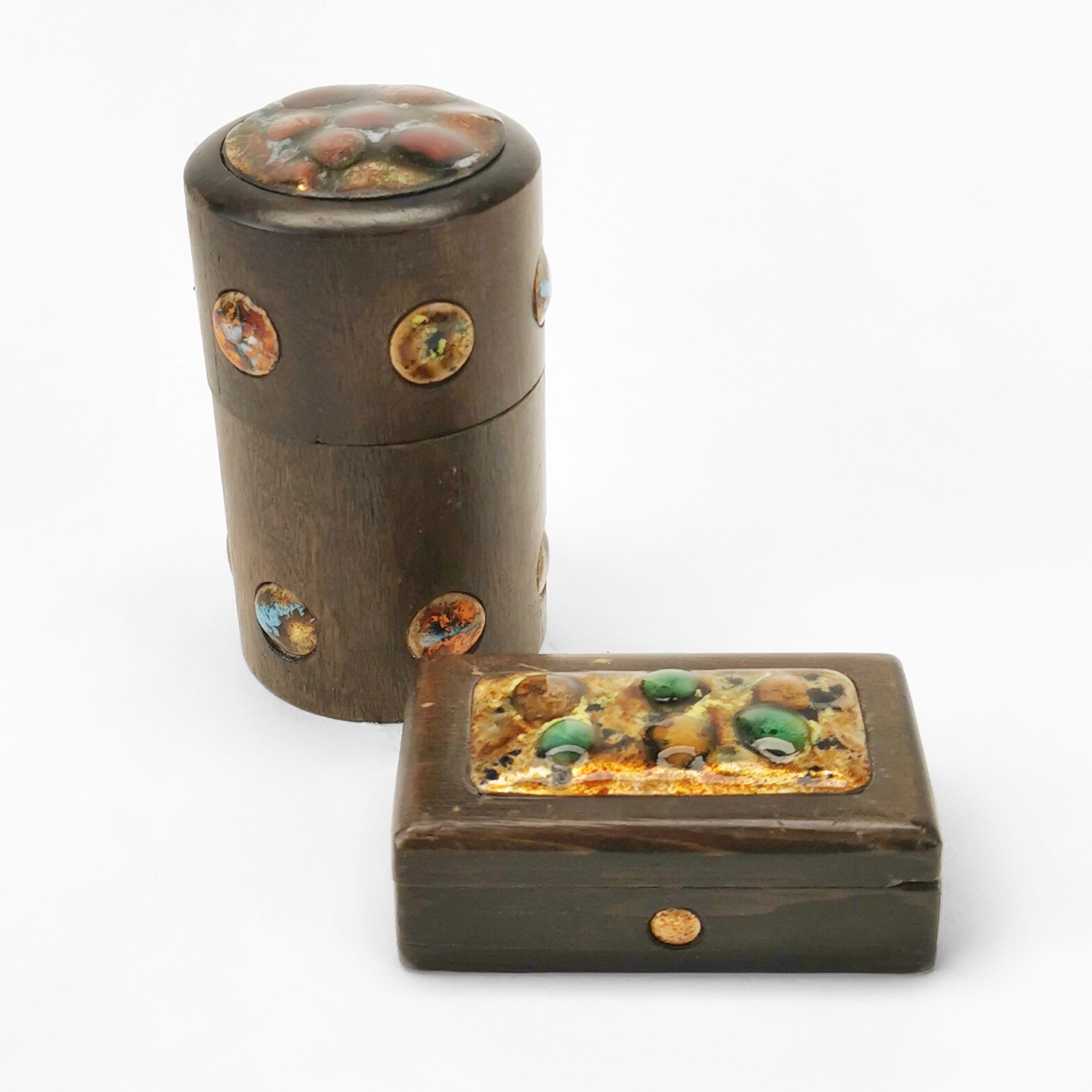 Bois et plaquettes d'émail, L 8 et 11 cm