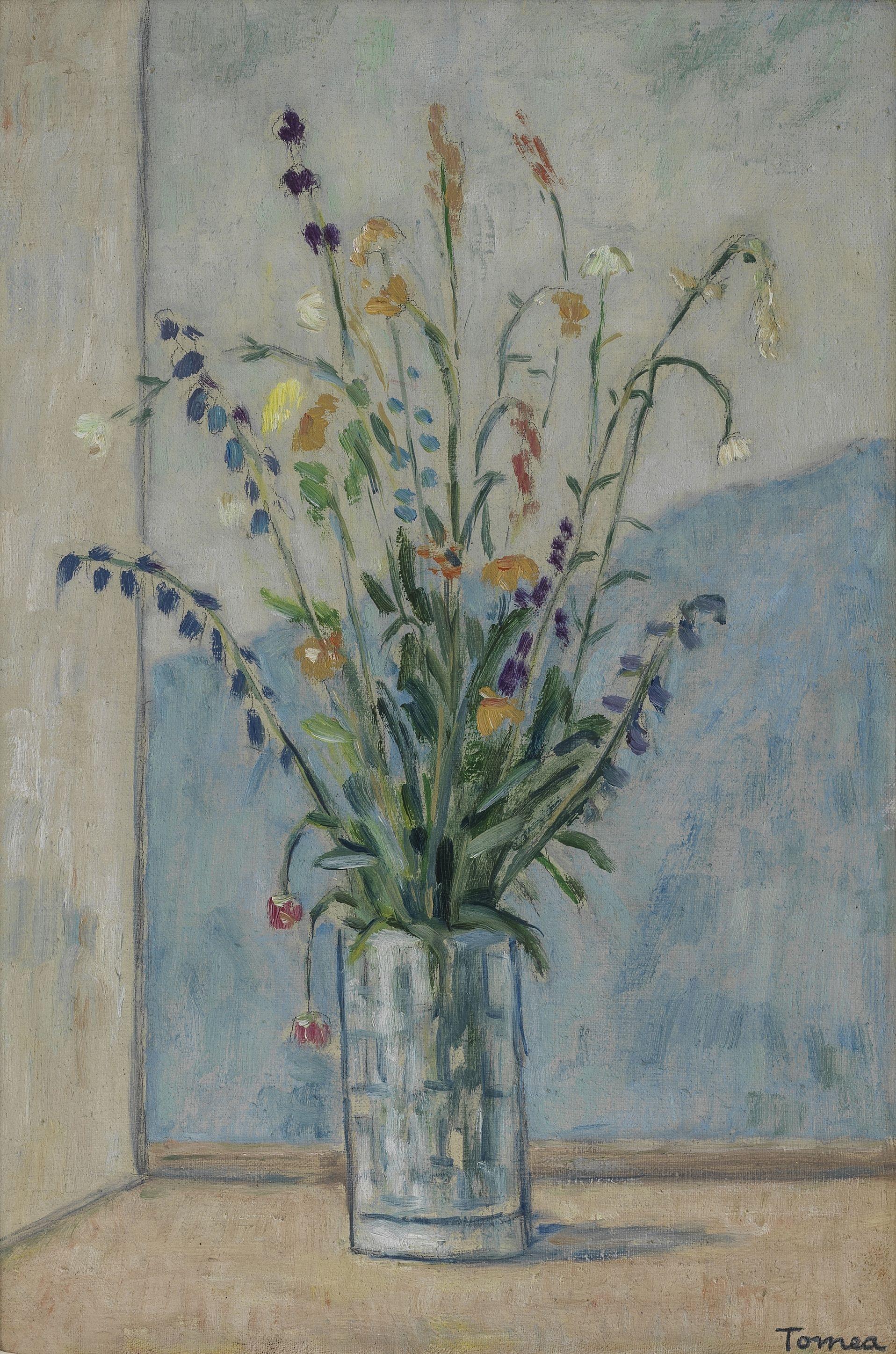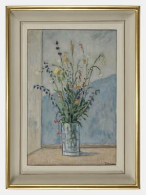 Vase de fleurs, huile sur toile, signée, 57x37 cm