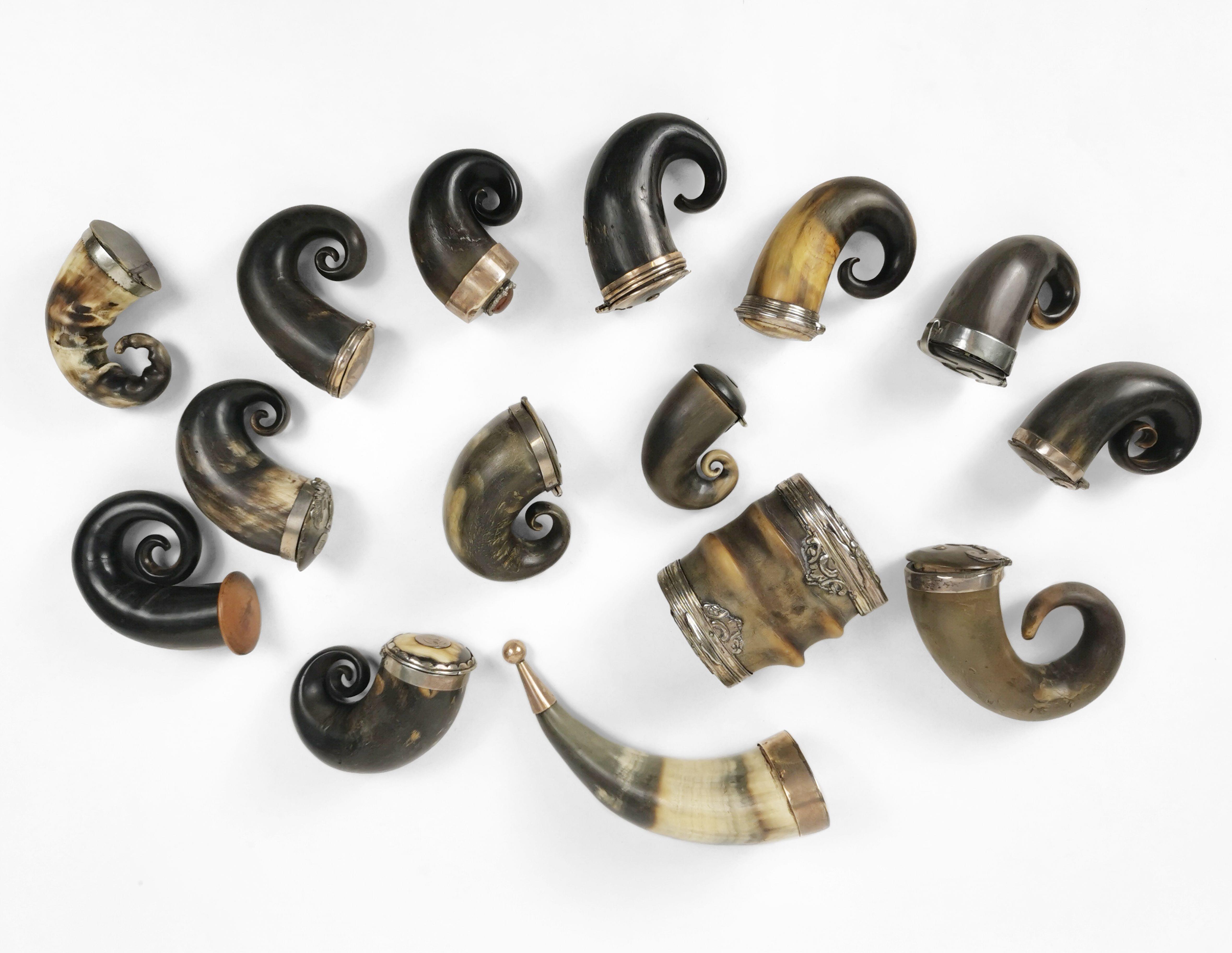 Corne, métal argenté et argent, dim. de 6 à 17 cm