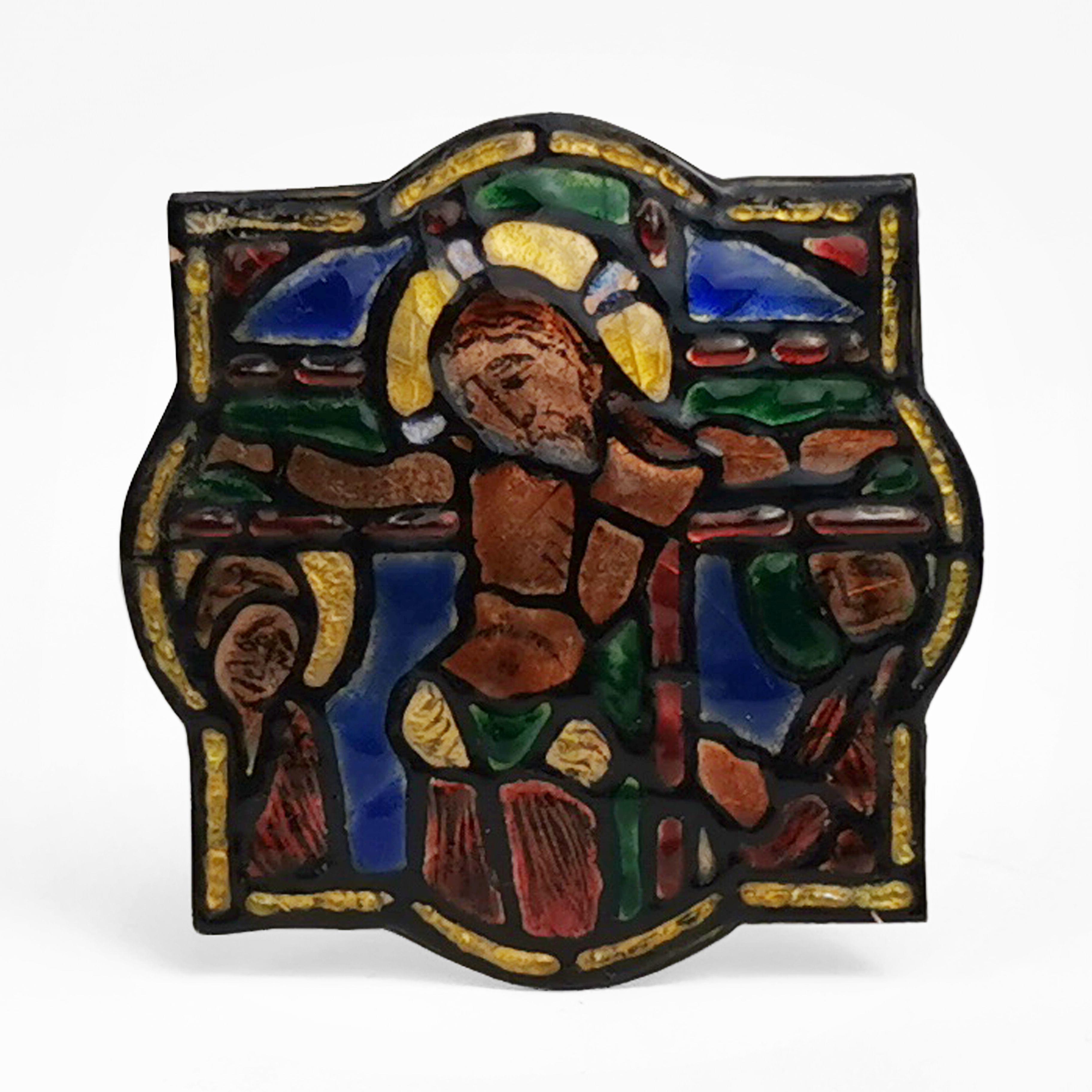 3233. Deux plaques l'une représentant la crucifixion, l'autre Adam et...