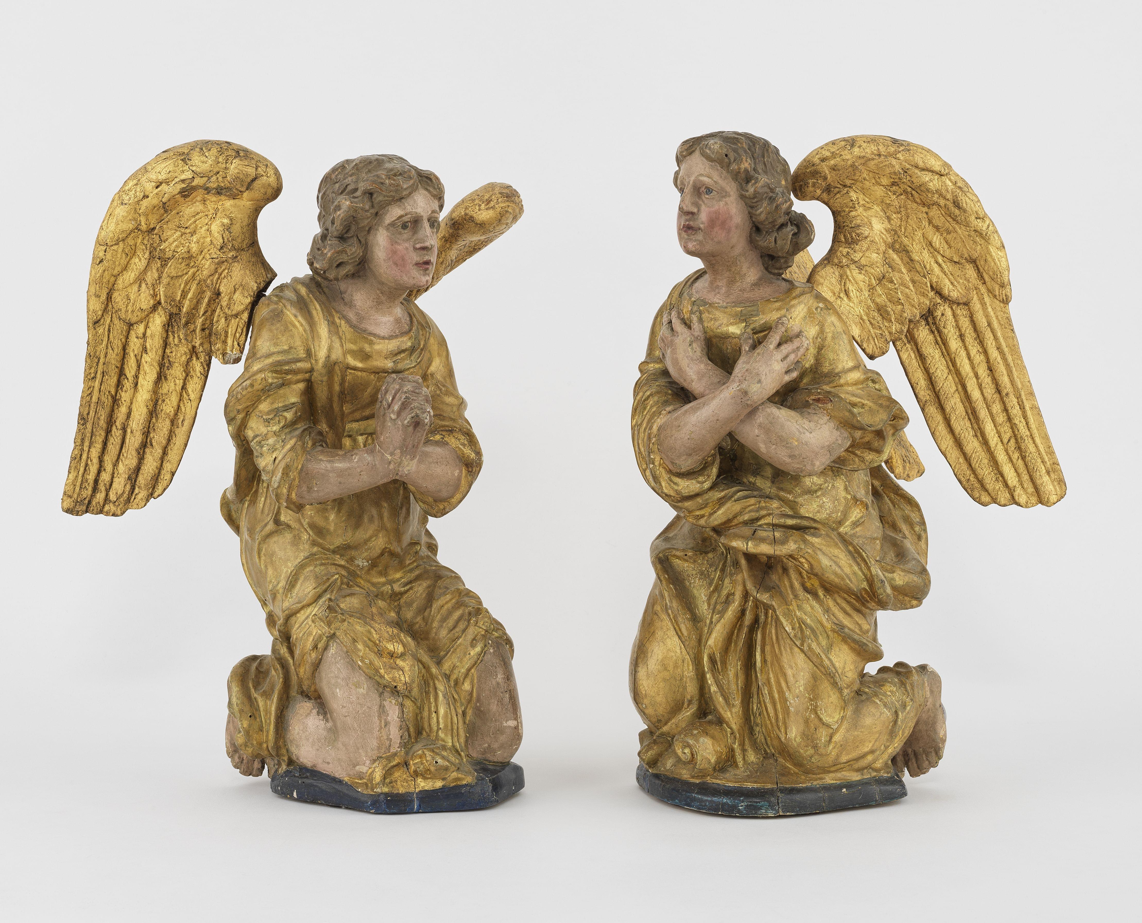 Brins en ivoire, à décor peint à la gouache de l'éruption du Vés...