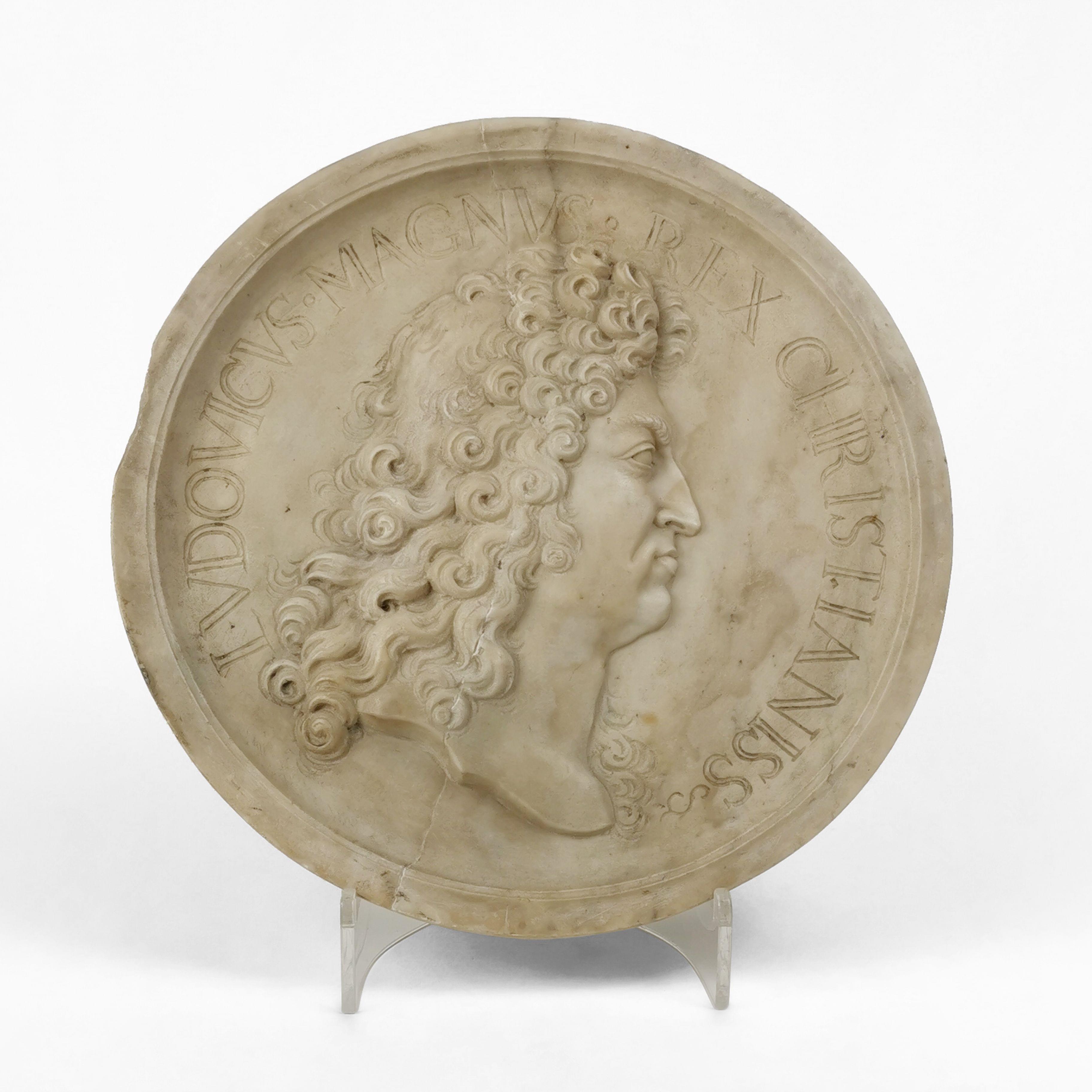Louis XIV de profil, médaillon ovale en marbre, D 32 cm
