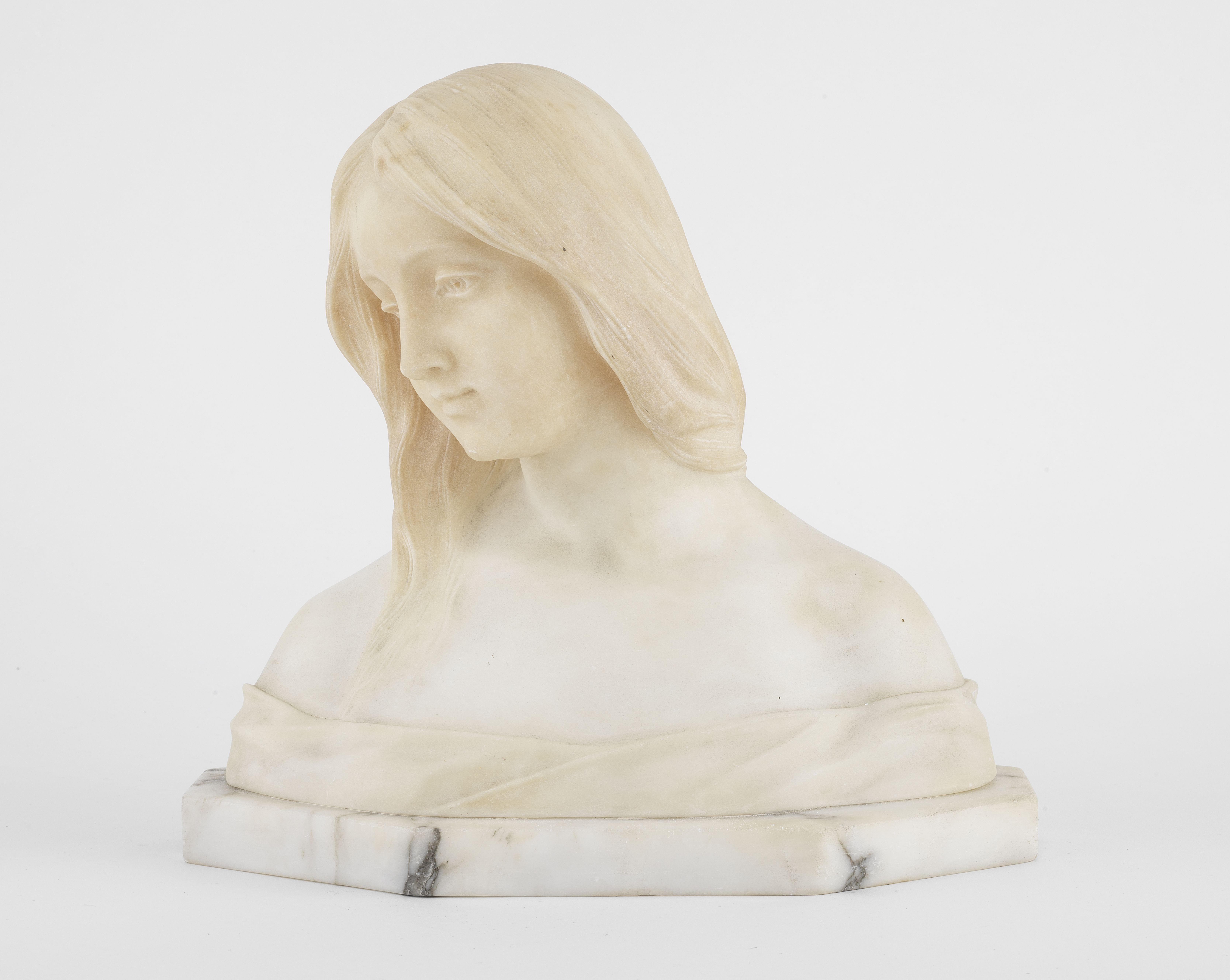 Buste de femme au voile, albâtre sculpté, H 23 cm