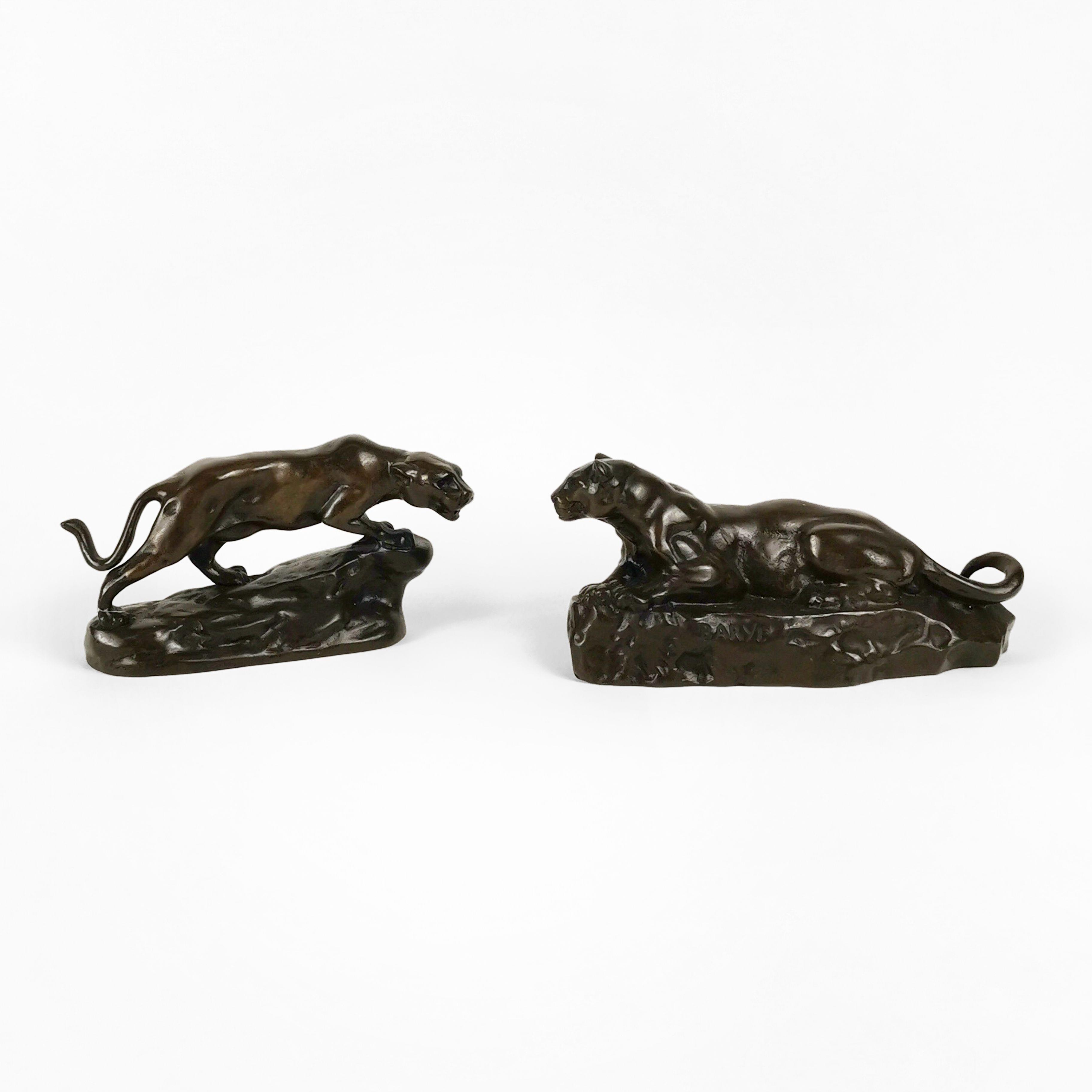 Deux lionnes, bronze, L 15 et 17 cm