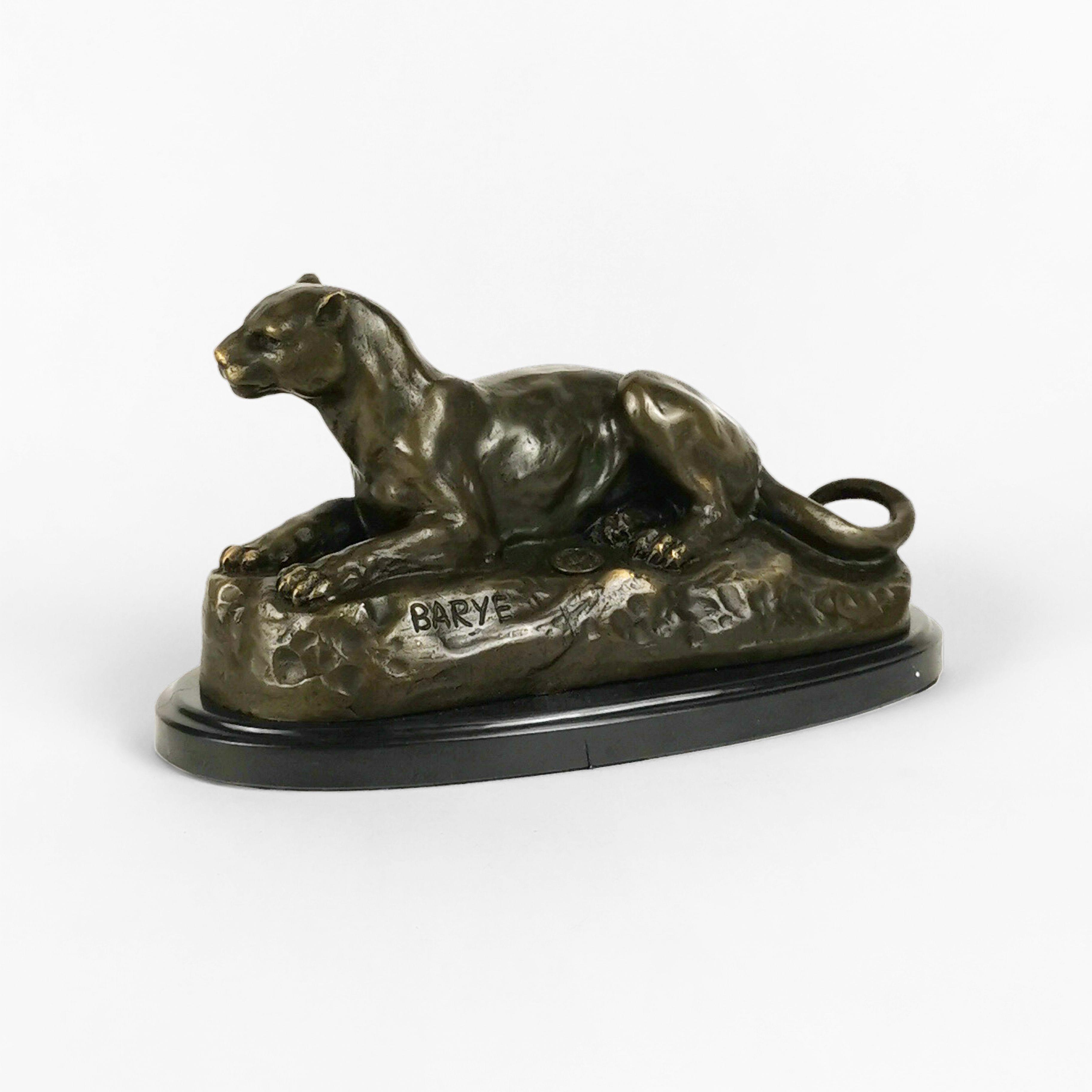 Le lion endormi, terre cuite, datée 1899, L 25 cm