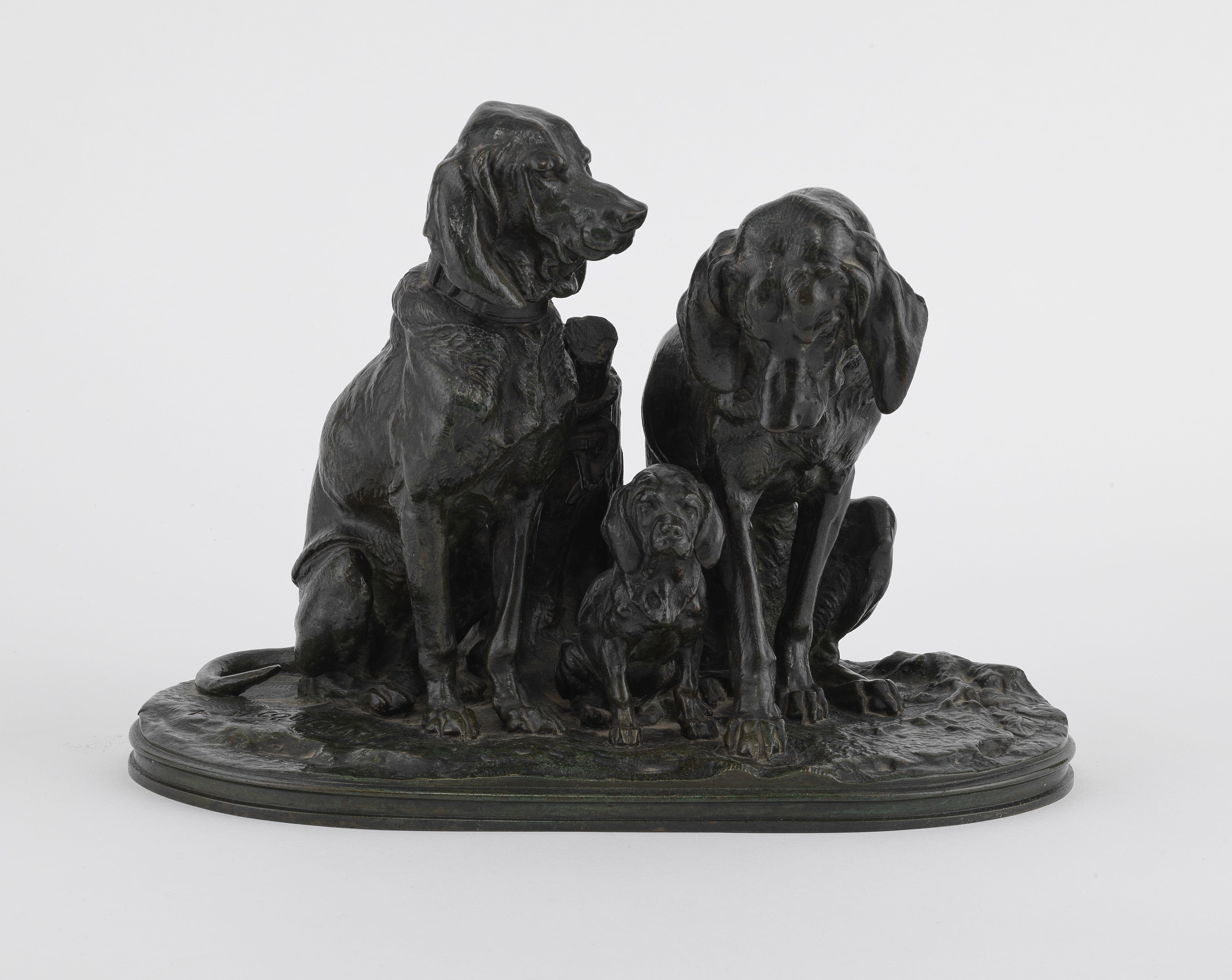 Enfants jouant à saute-mouton, bronze, signé, H 12 cm