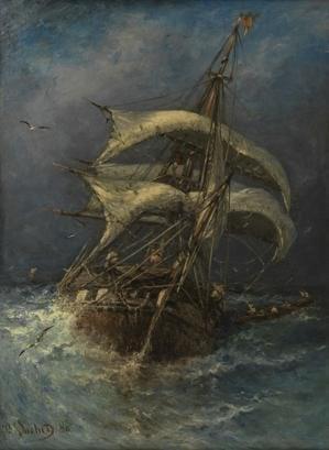 La tempête, huile sur toile, datée 80, 167x123 cm