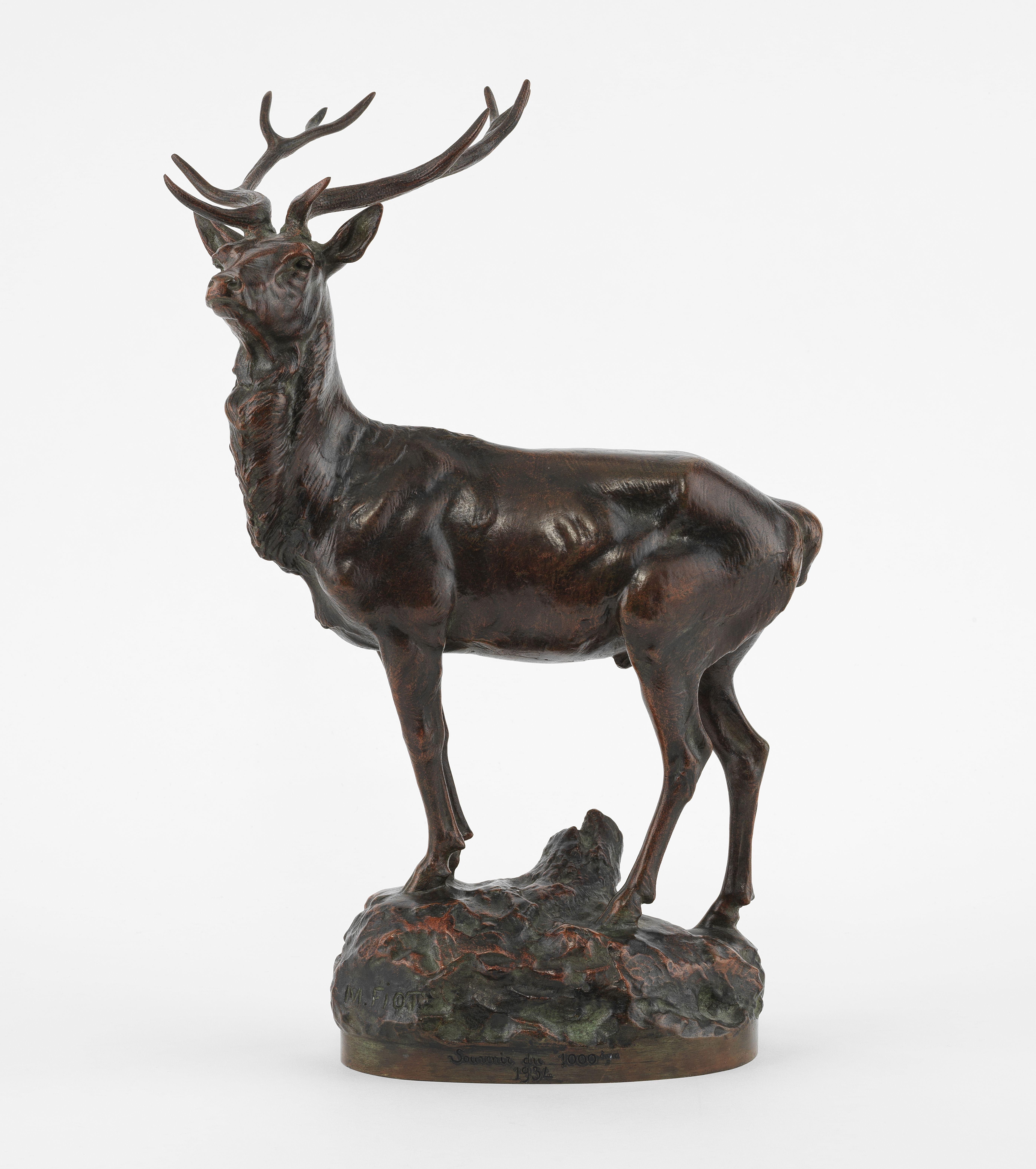 Cerf, bronze à patine brune, signé, daté 1934, cachet du fondeur Susse Frères à Paris, H 41 cm