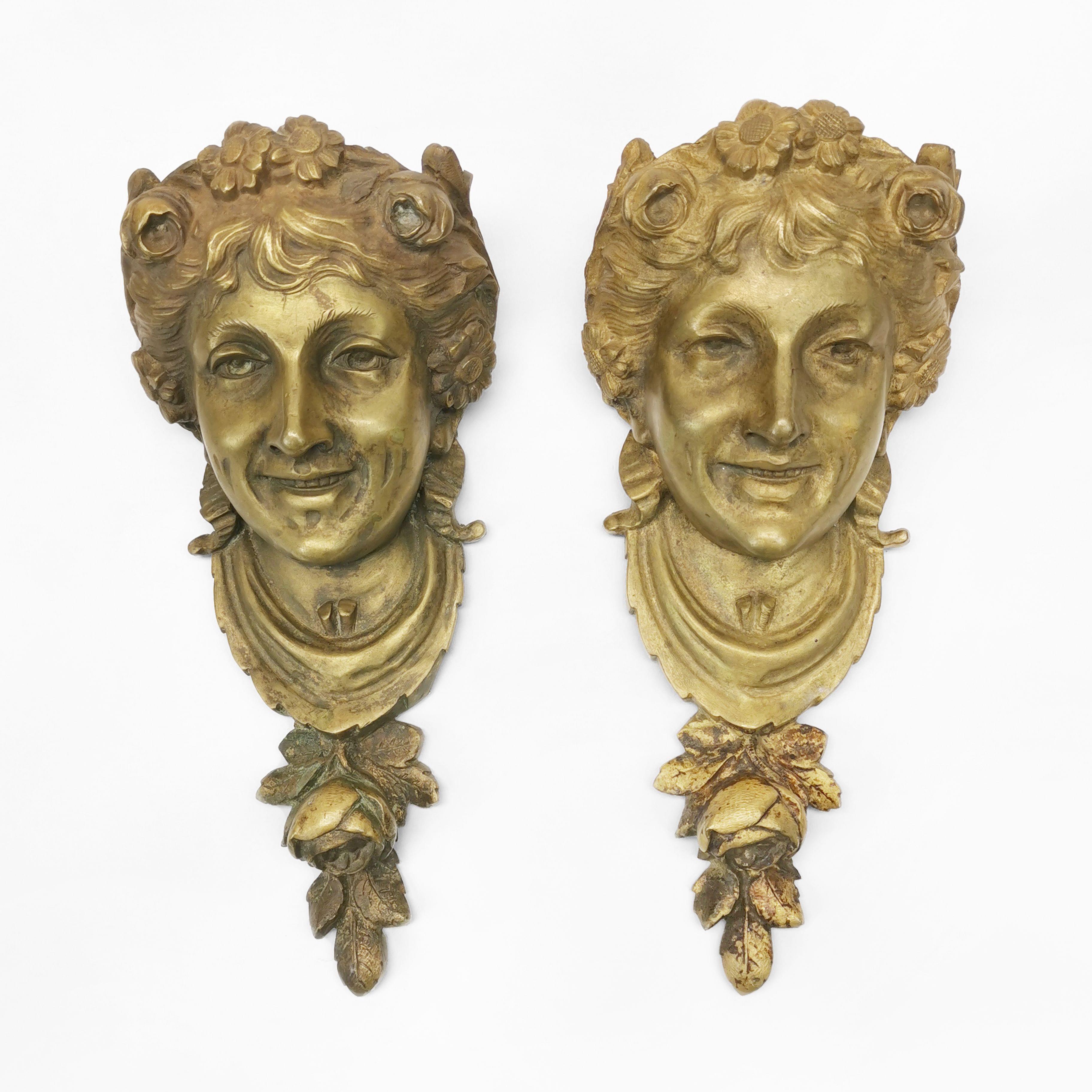 3231. Paire d'éléments de décoration figurant des têtes de femmes couronnées de fleurs