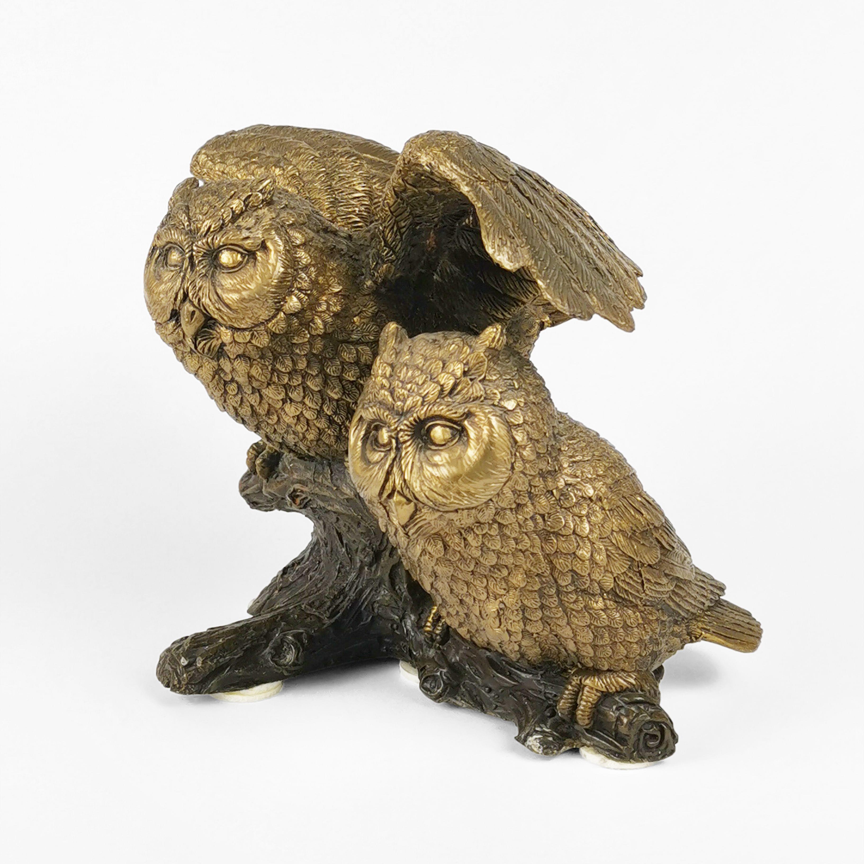 Deux chouettes, groupe en bronze à patine médaille, H 20 cm