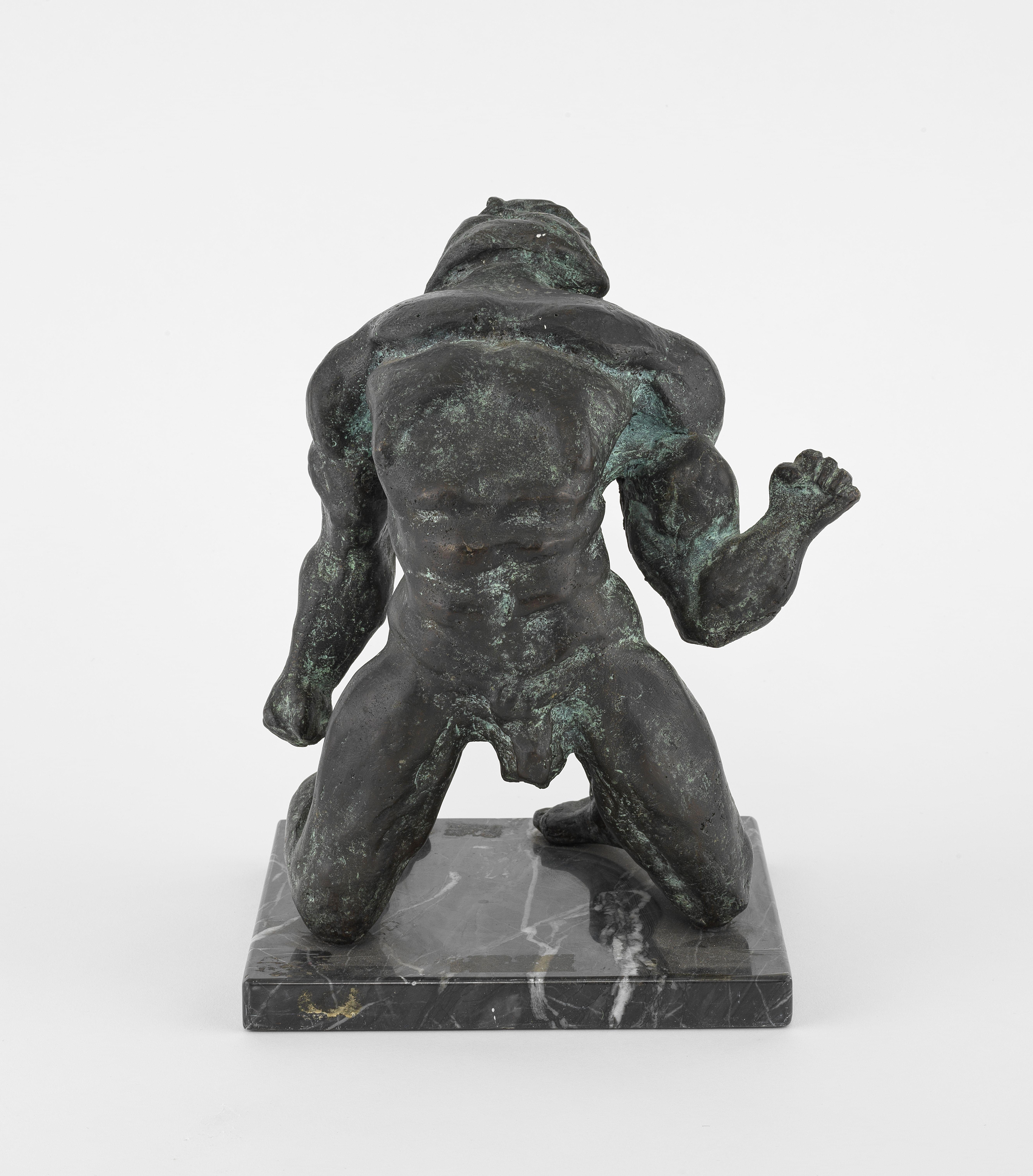 Homme nu assis, bronze, signé et daté 85, H 25 cm