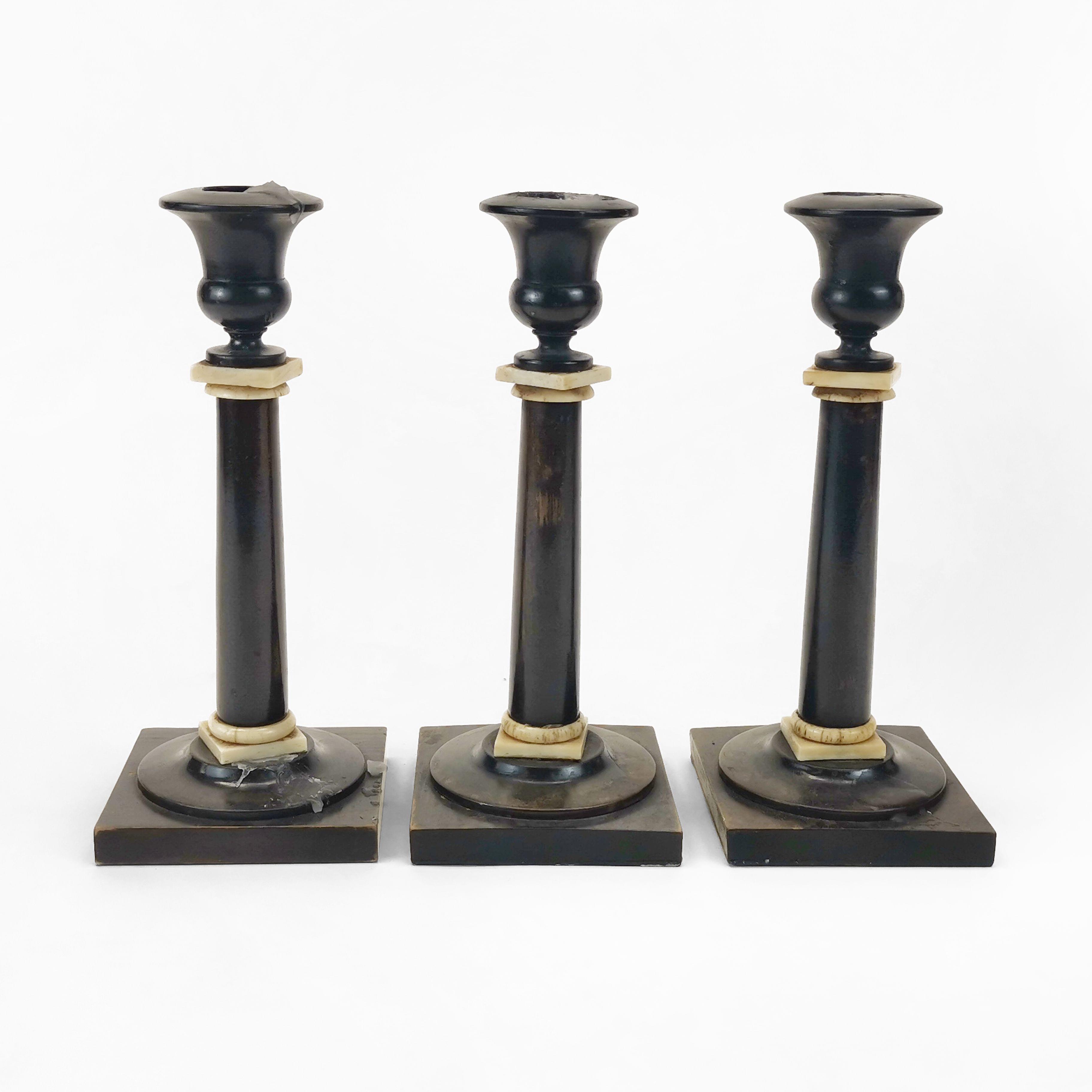 Brins en ivoire, à décor peint à la gouache de l'éruption du Vés...