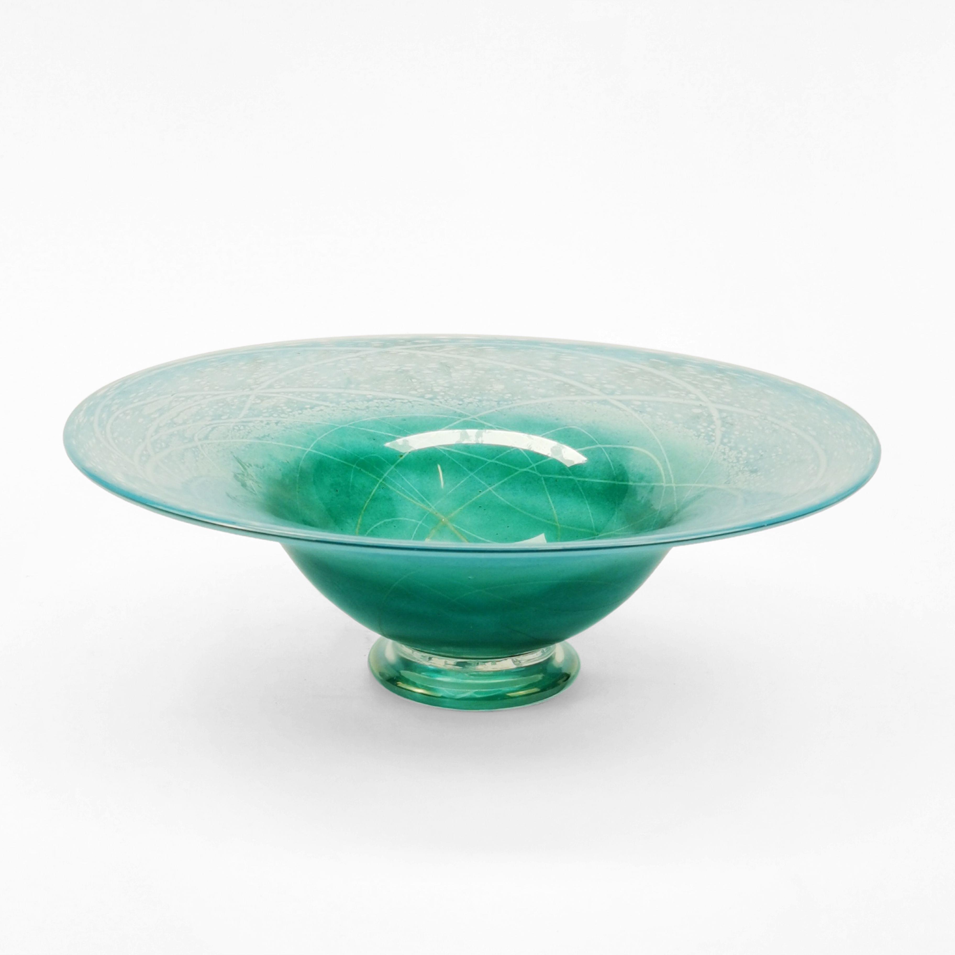 Verre, vert-bleu, à patine opalecente, D 29 cm