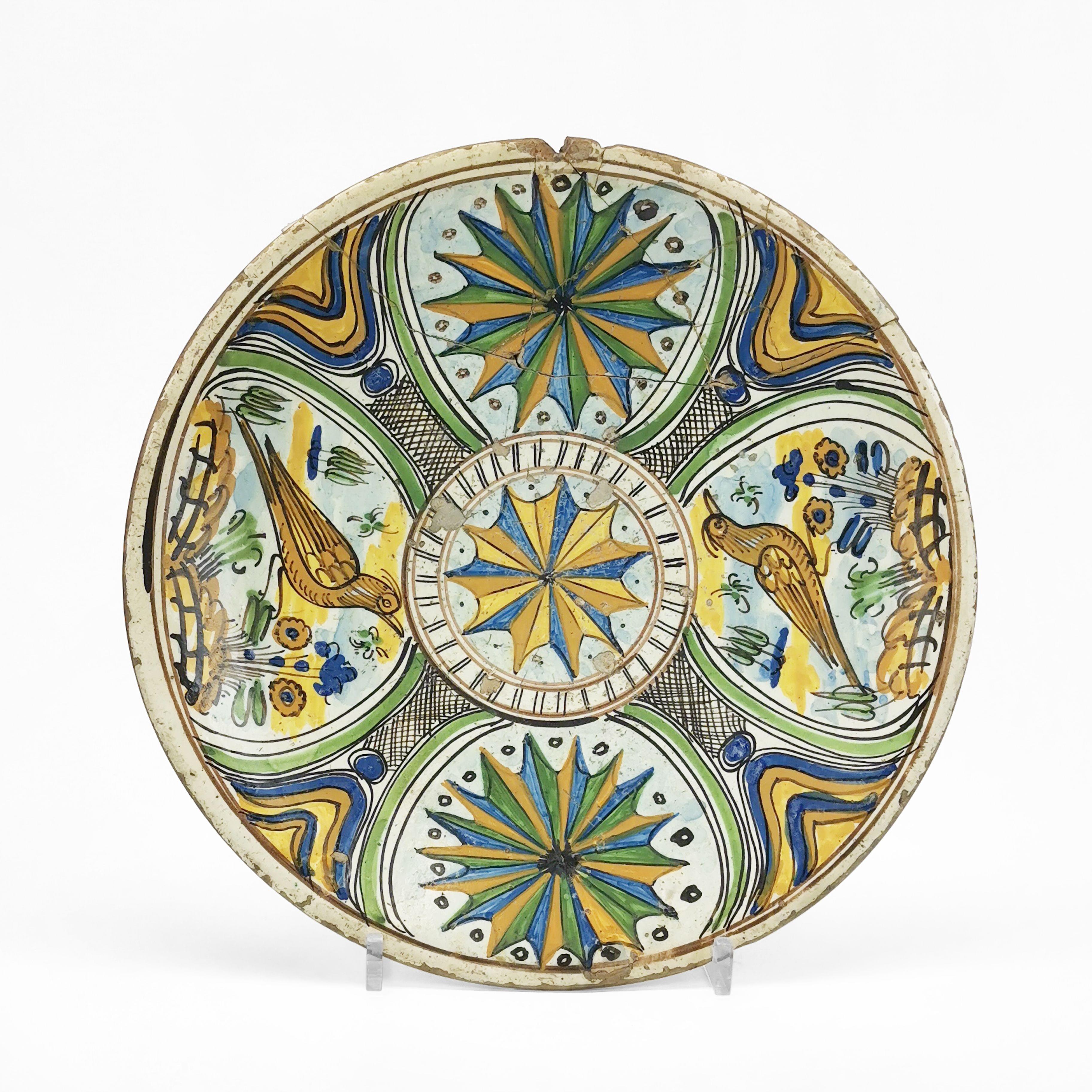 Faïence émaillée polychrome à motif floral, D 36 cm