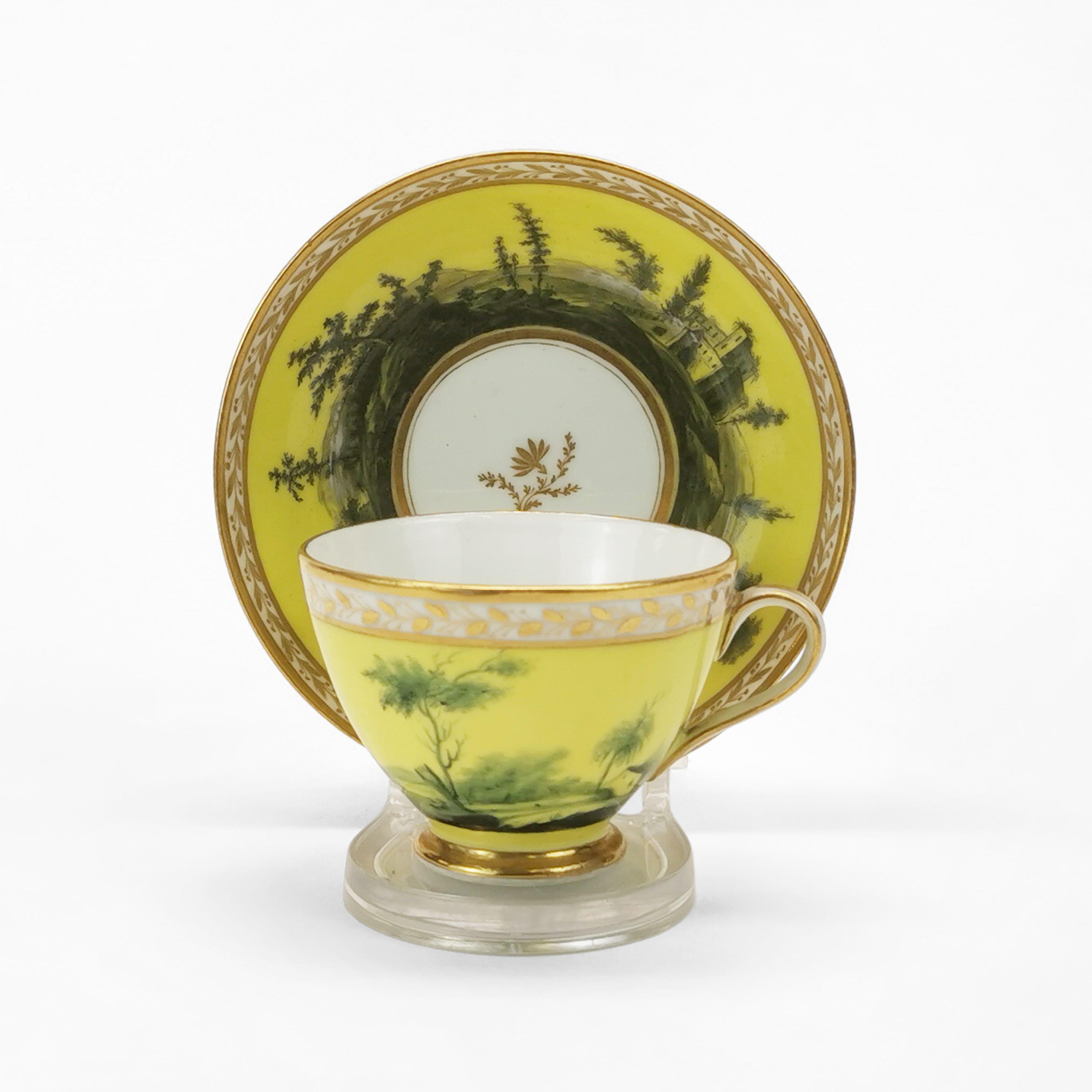 3339. Tasse et sous-tasse d'époque Empire à décor de paysages