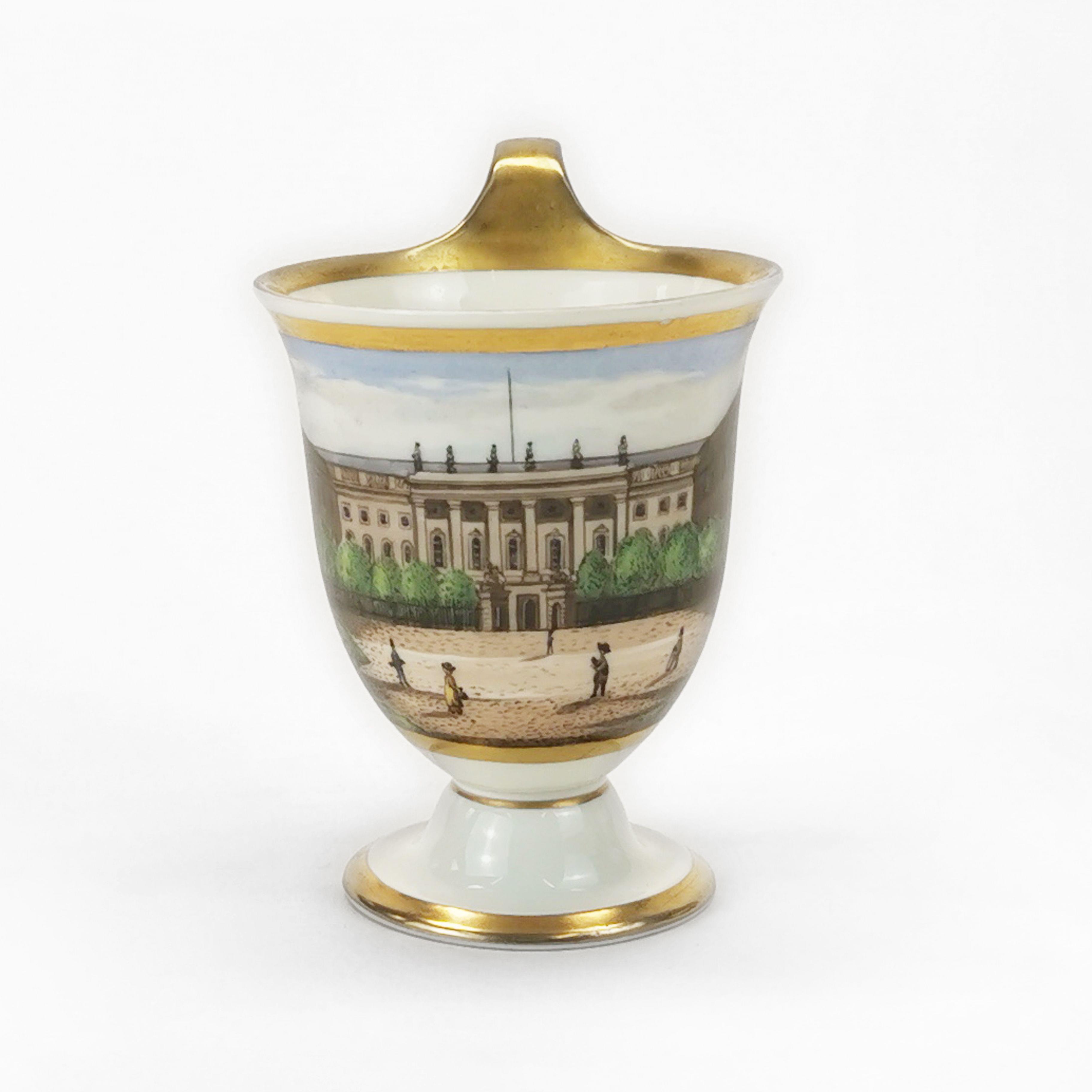 383. Tête-à-tête blanc et or à décor de scènes de tragédie en grisail...