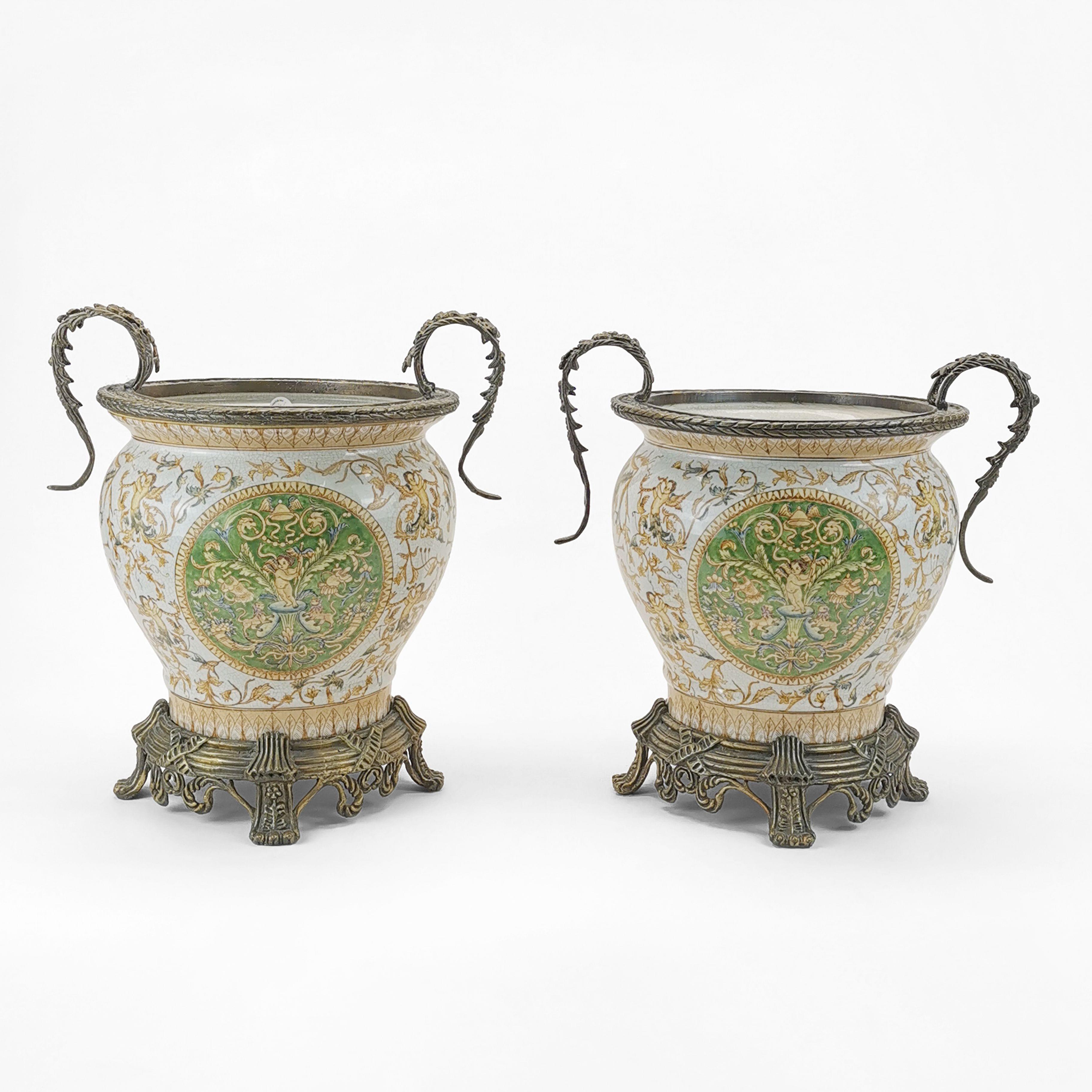 3344. Paire de cache-pots à décor de rinceaux et putti, XIXe s