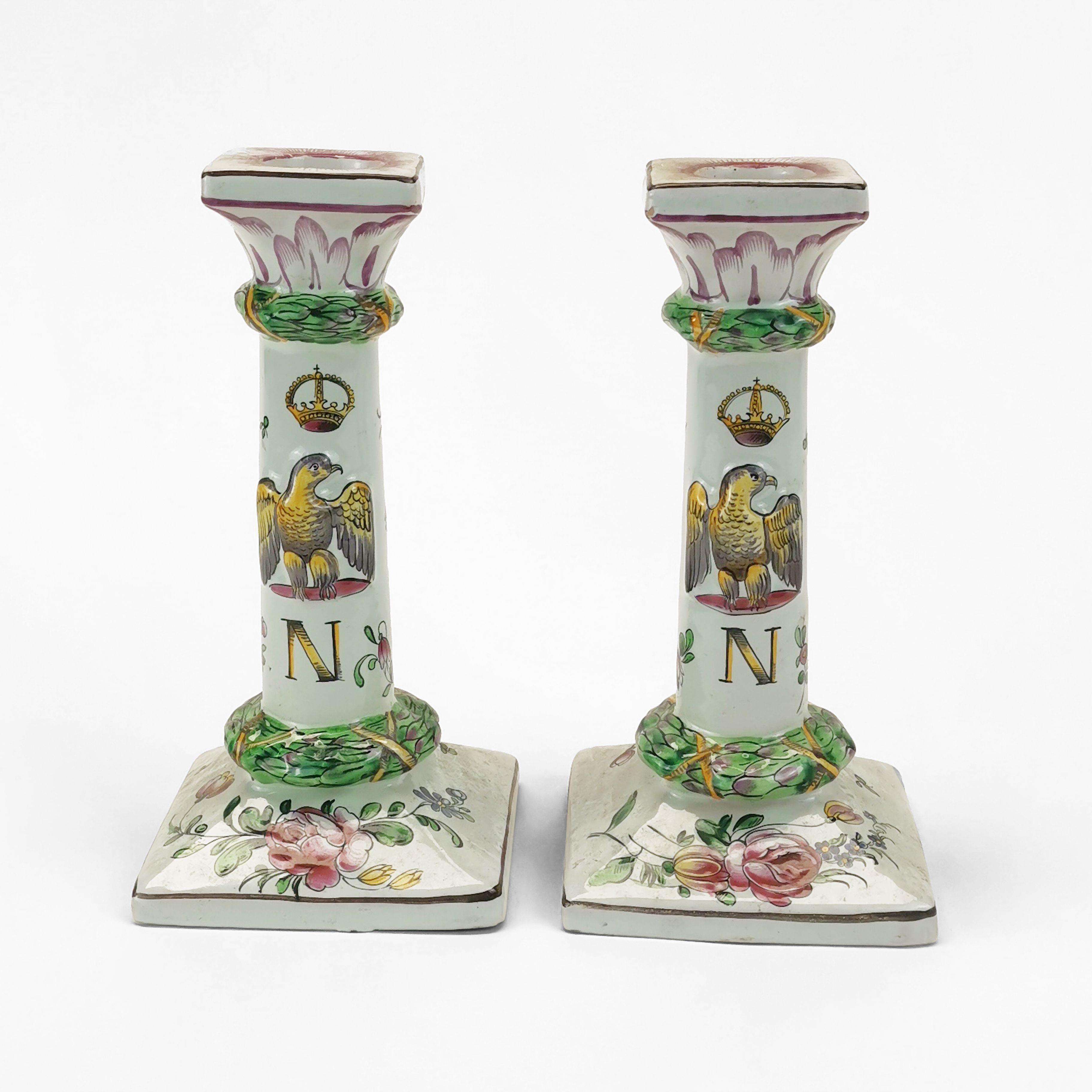 Faïence émaillée polychrome à décor d'aigles, H 20 cm