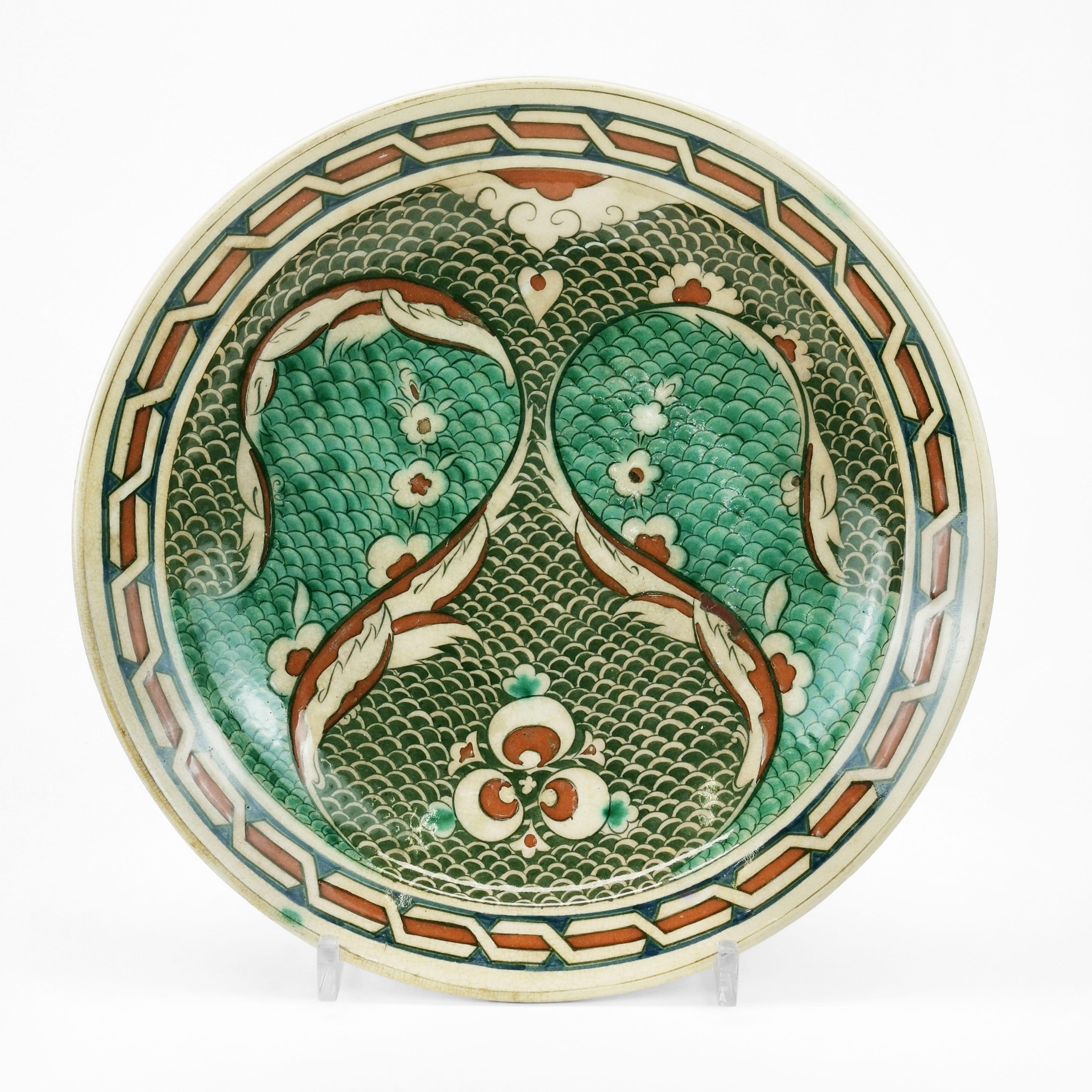 Céramique à décor émaillé et peint d'une vue du lac LémanD 47 cm