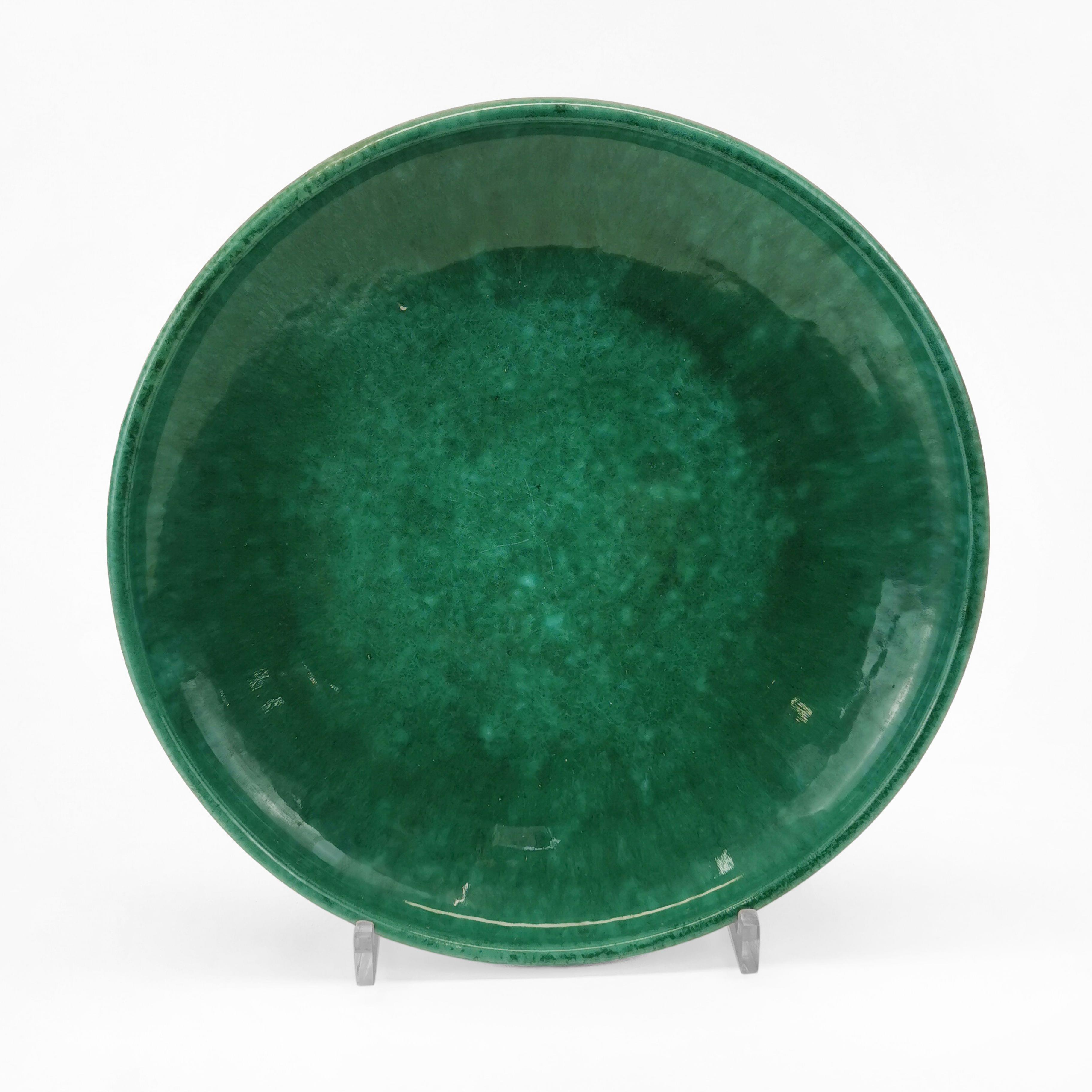 Plat polygonal, céramique émaillée vert, signé Lifas, 33 cm