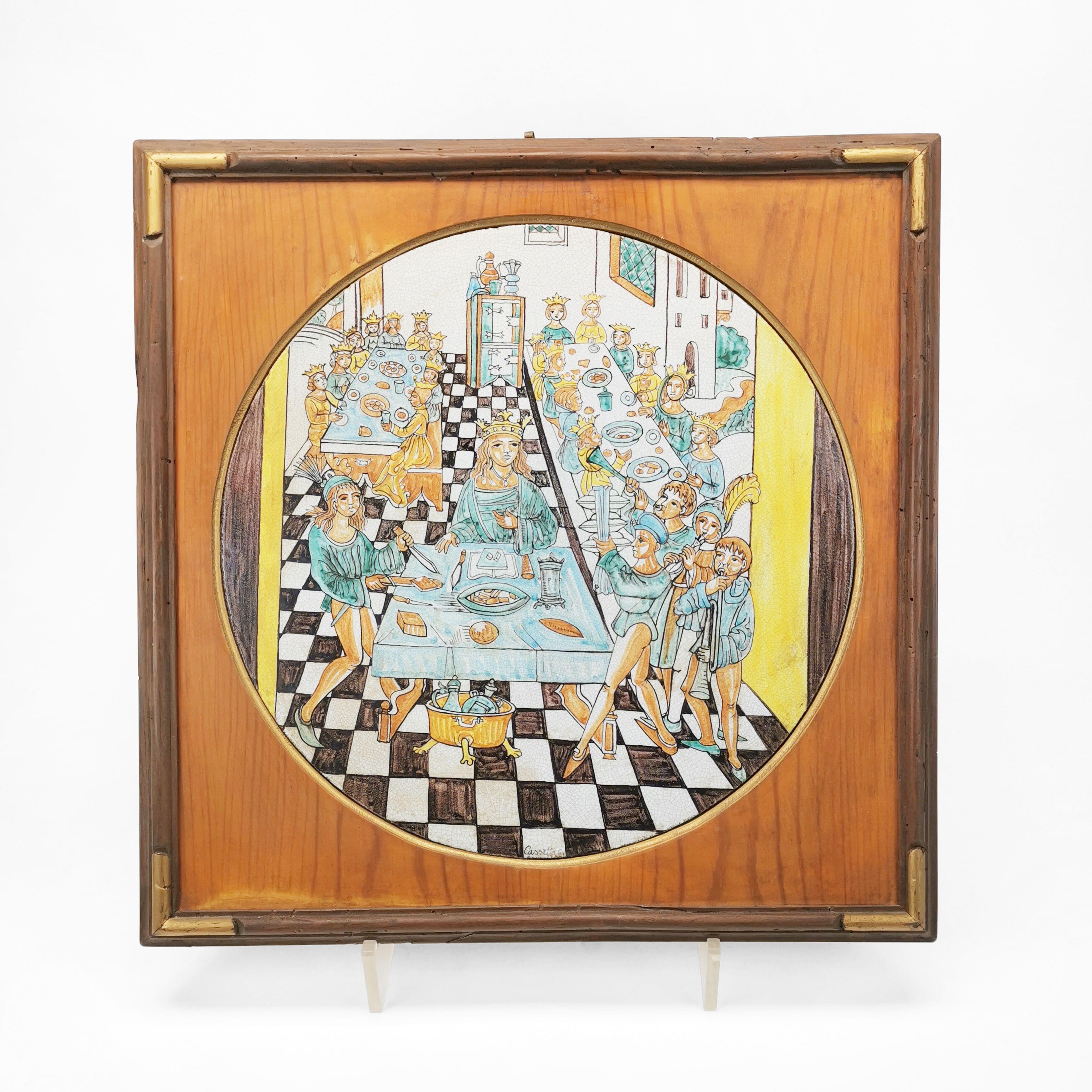 Dîner royal, faïence émaillée polychrome, D 42 cm