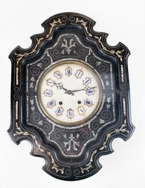 Cadran en marbre, émail et métal doré, caisse en bois noirci inc...