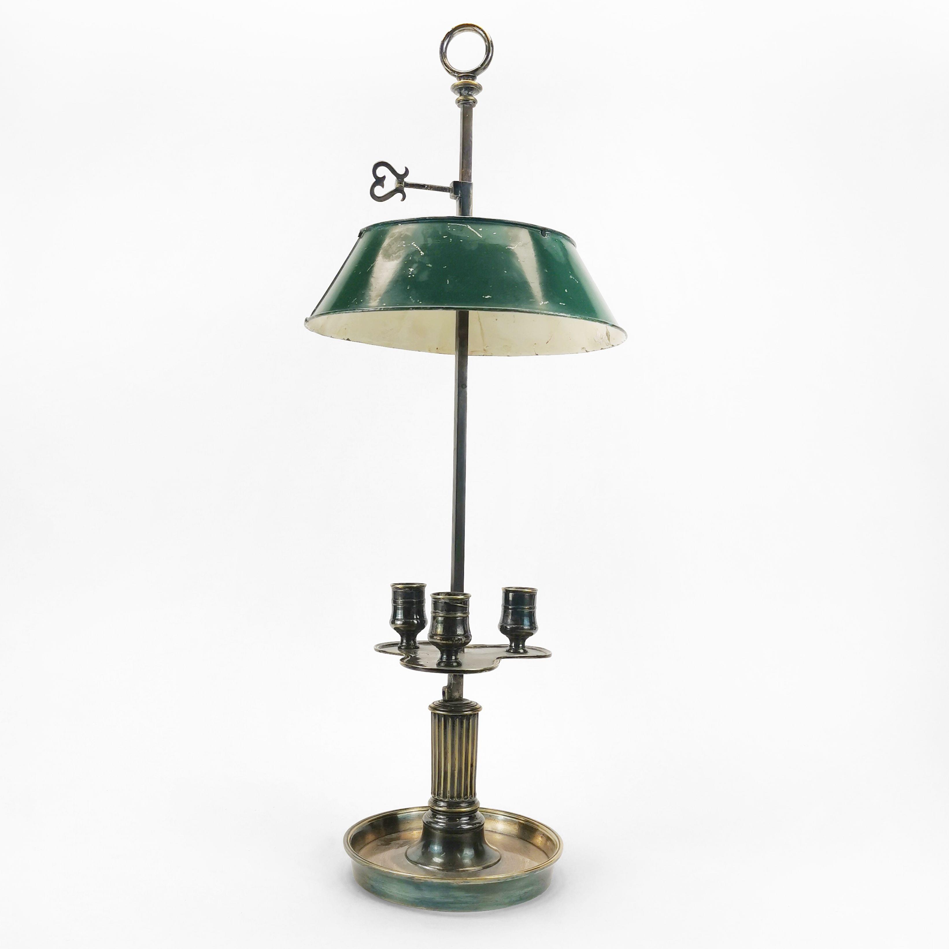 Bronze argenté et tôle laquée verte, H 62 cm. Provenance: château de Russin