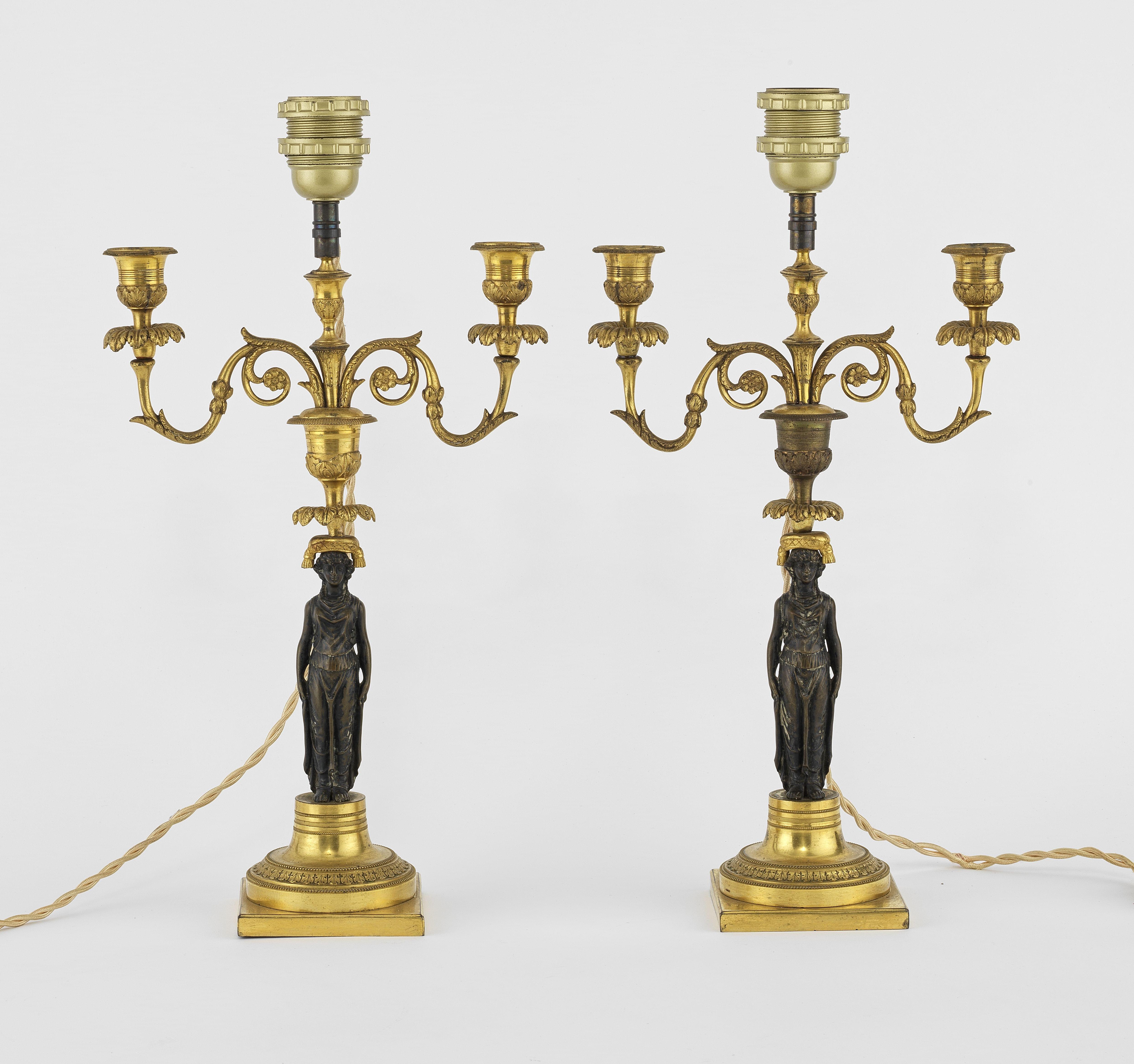 3451. Paire de lampes à décor de cariatides en partie d'époque Restauration