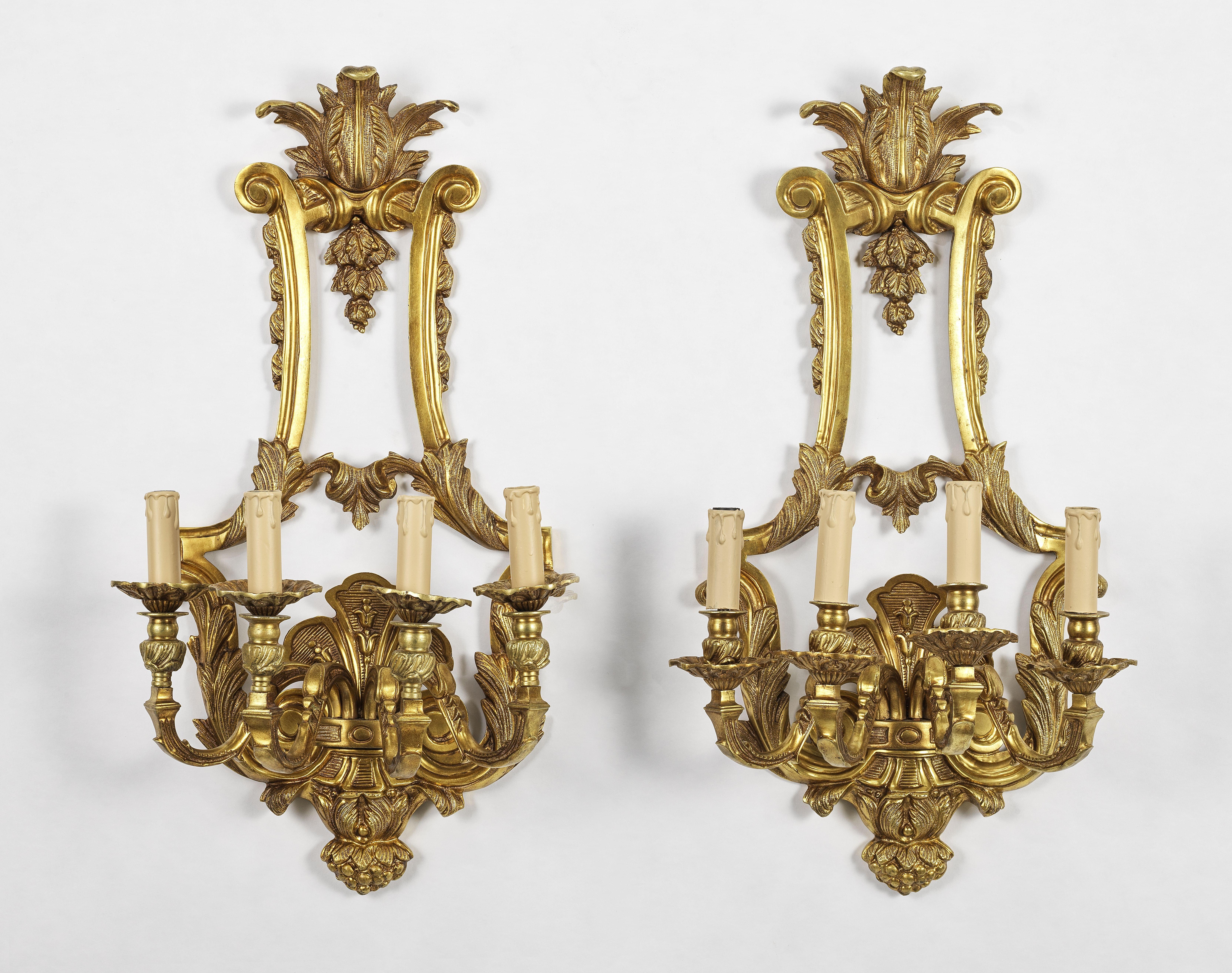 3487. Paire d'appliques quatre lumières de style Louis XIV