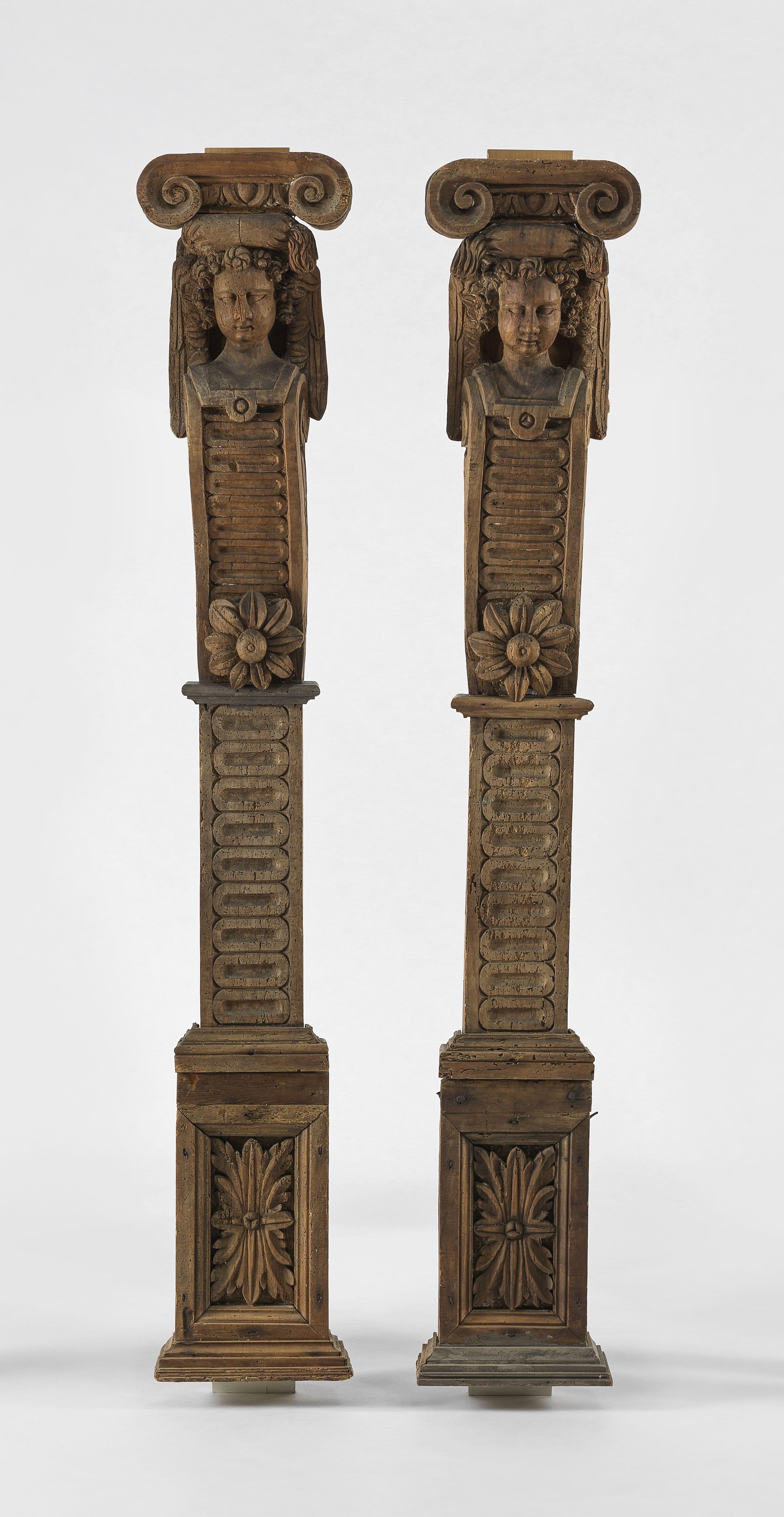 3507. Paire de pilastres décoratifs à décor de termes, XVIIIe s