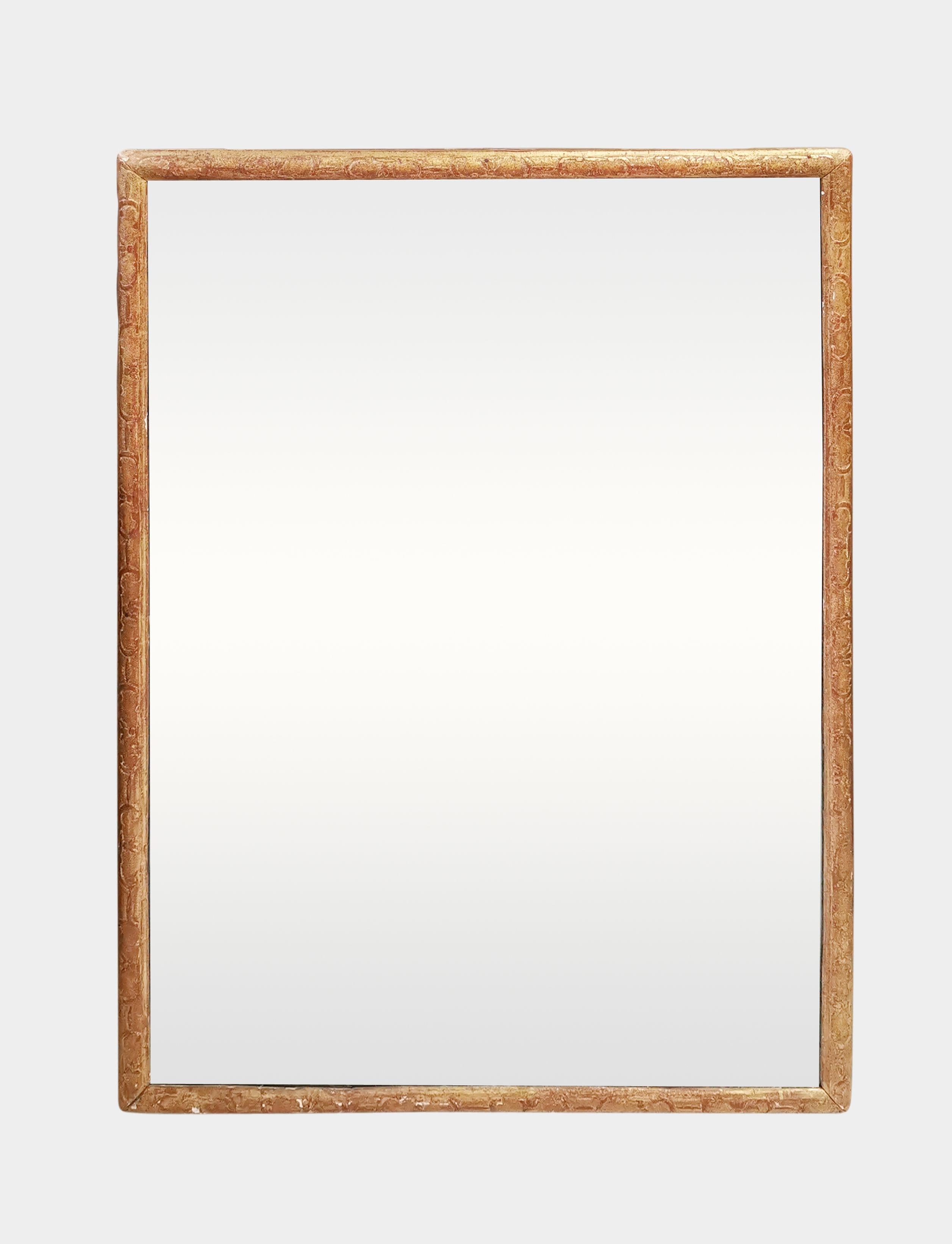 Bois sculpté et doré à motif à la bérain, glace au mercure, 95x69 cm