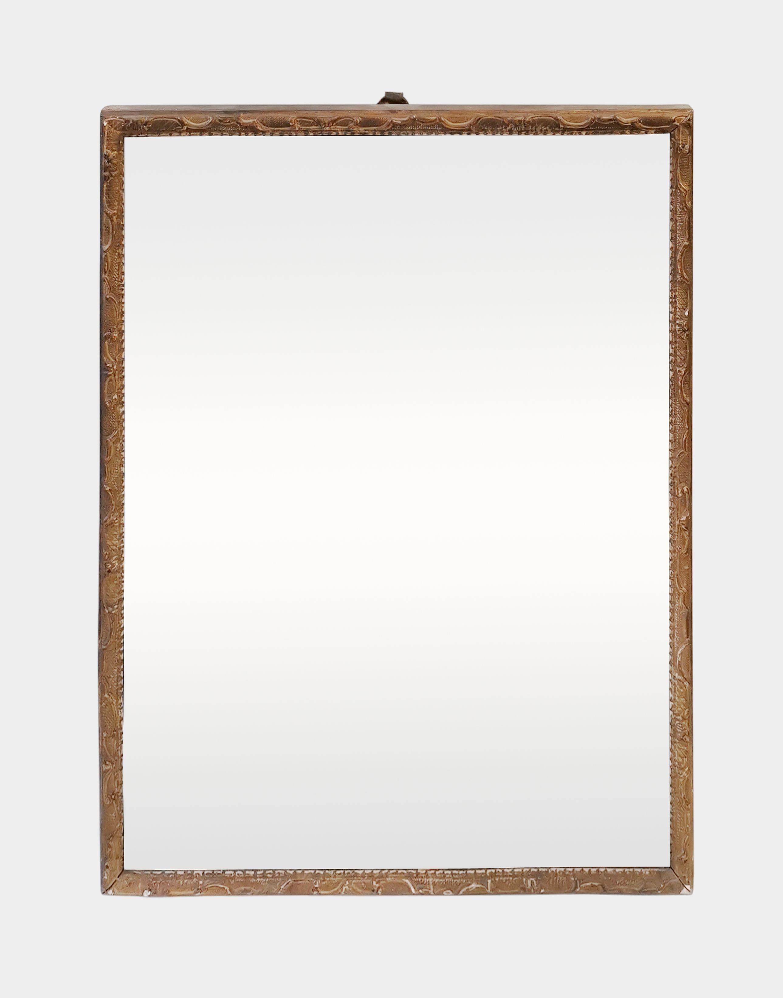 Bois sculpté et doré à motif à la bérain, glace au mercure, 69,5x55,5 cm