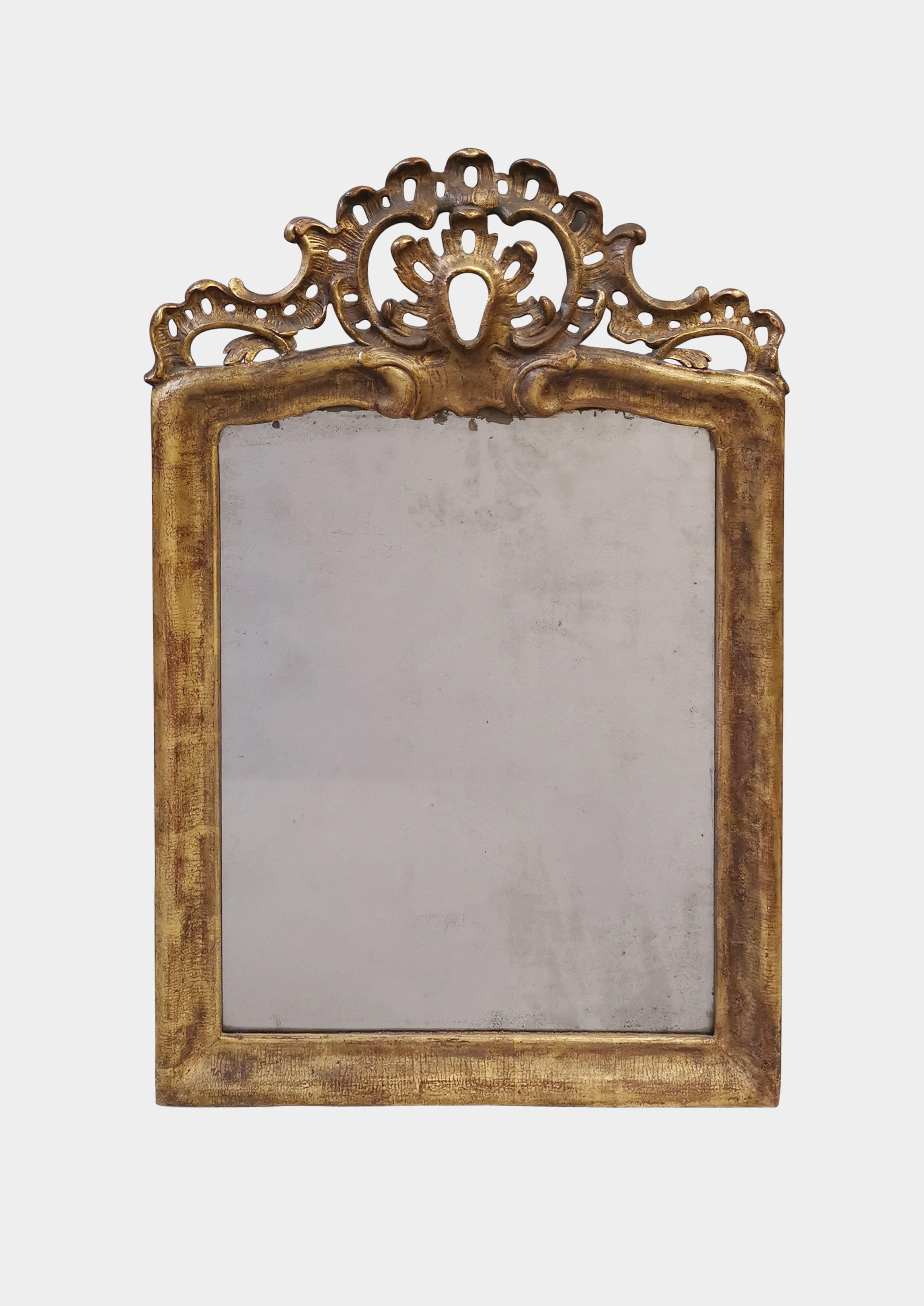 Bois sculpté et doré à motifs de coquilles, verre biseauté au mercure, 71x46 cm