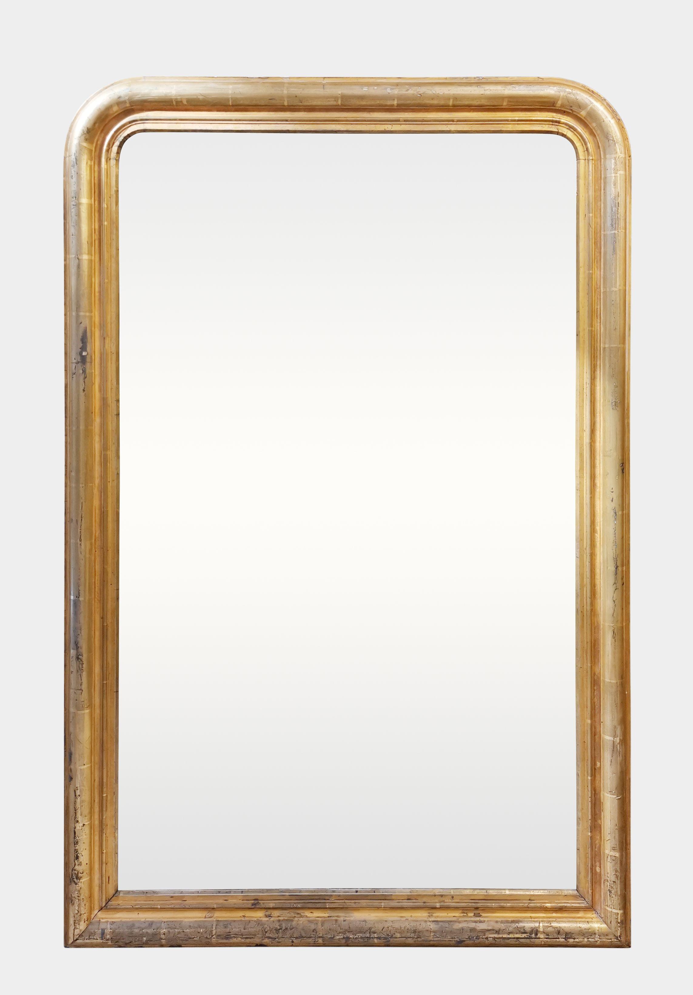 Bois sculpté et doré à motif à la bérain, glace au mercure, 95x6...