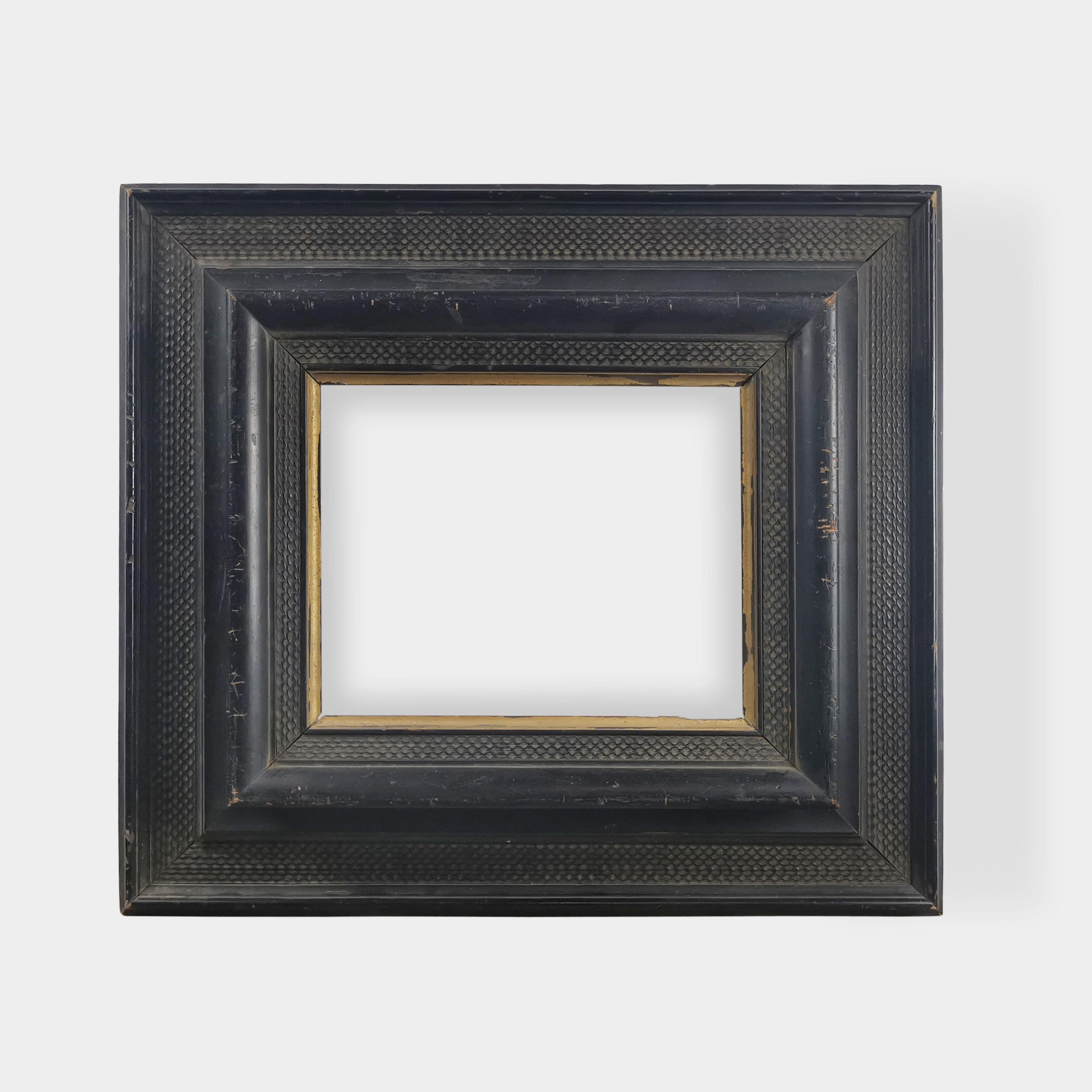Bois mouluré, noirci et en partie doré, 53x48 cm et à la vue 28x22,5 cm