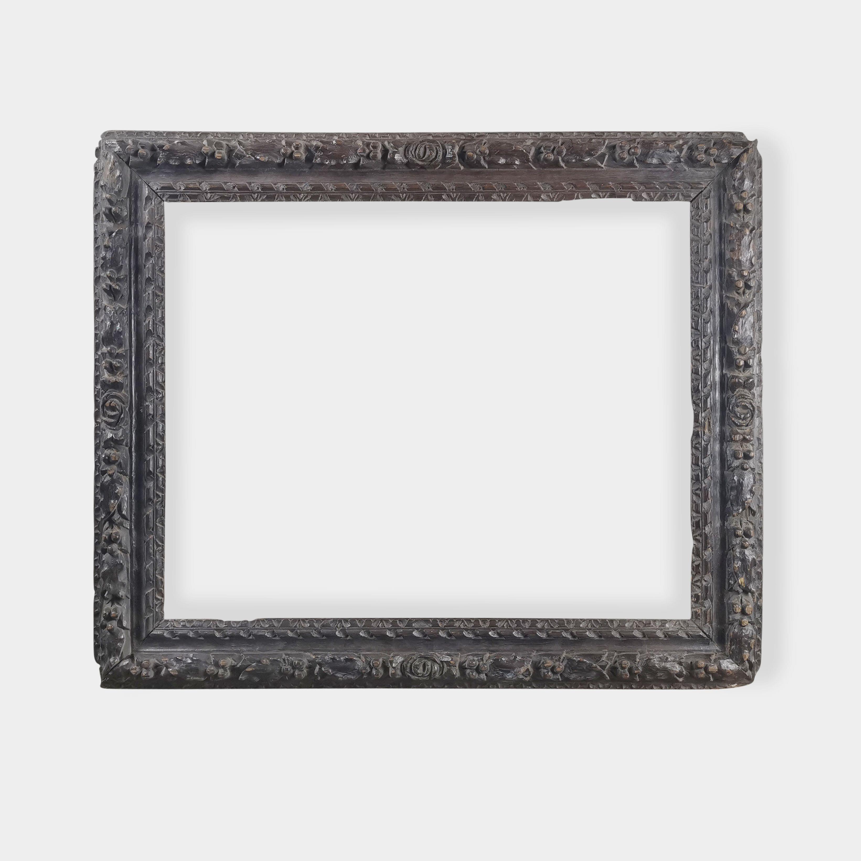 Bois au naturel sculpté d'une frise de feuilles de laurier, 81,5x68 et à la vue 66,5x52,5 cm
