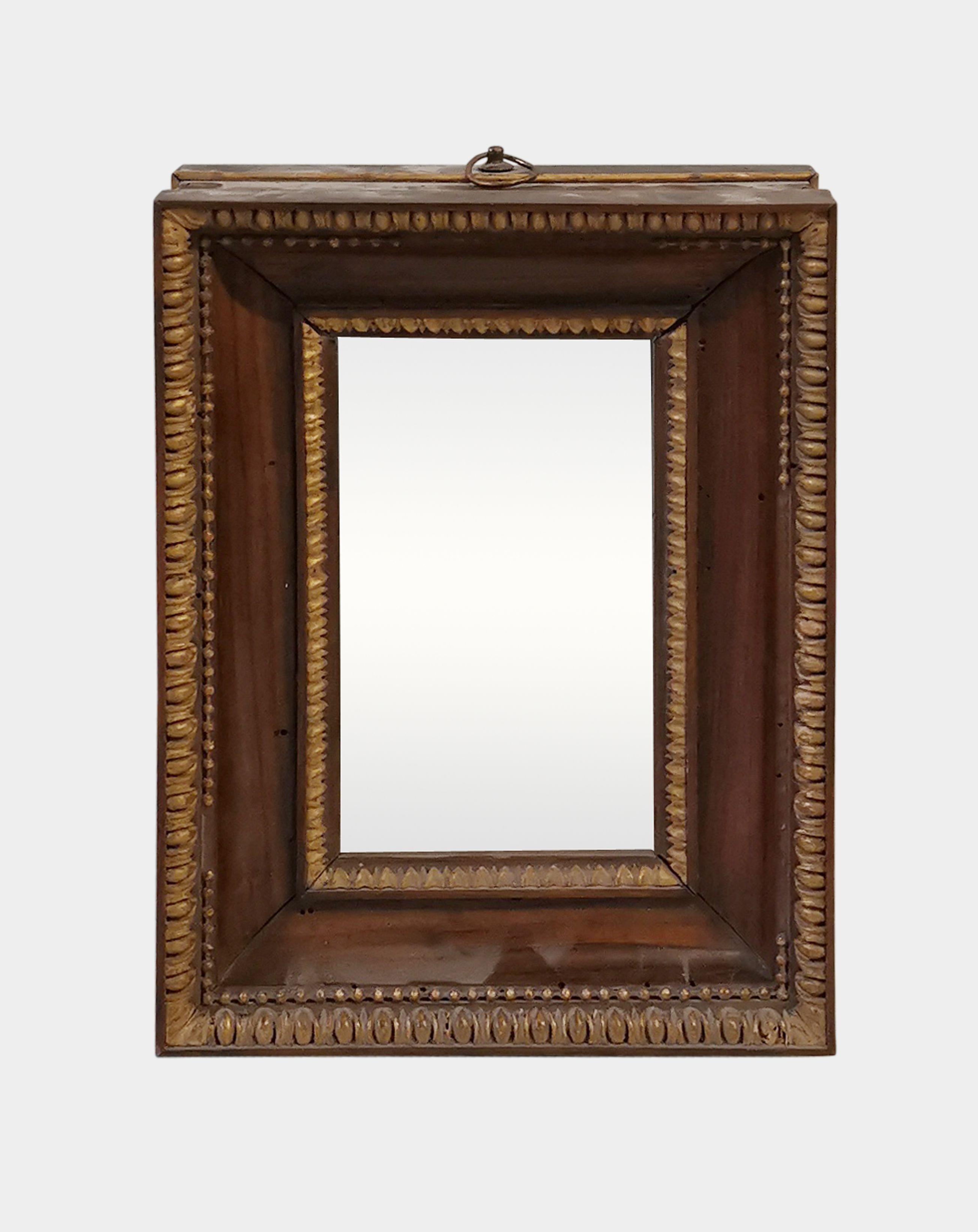 Bois au naturel et bois sculpté et doré, glace au mercure, 30x21 cm