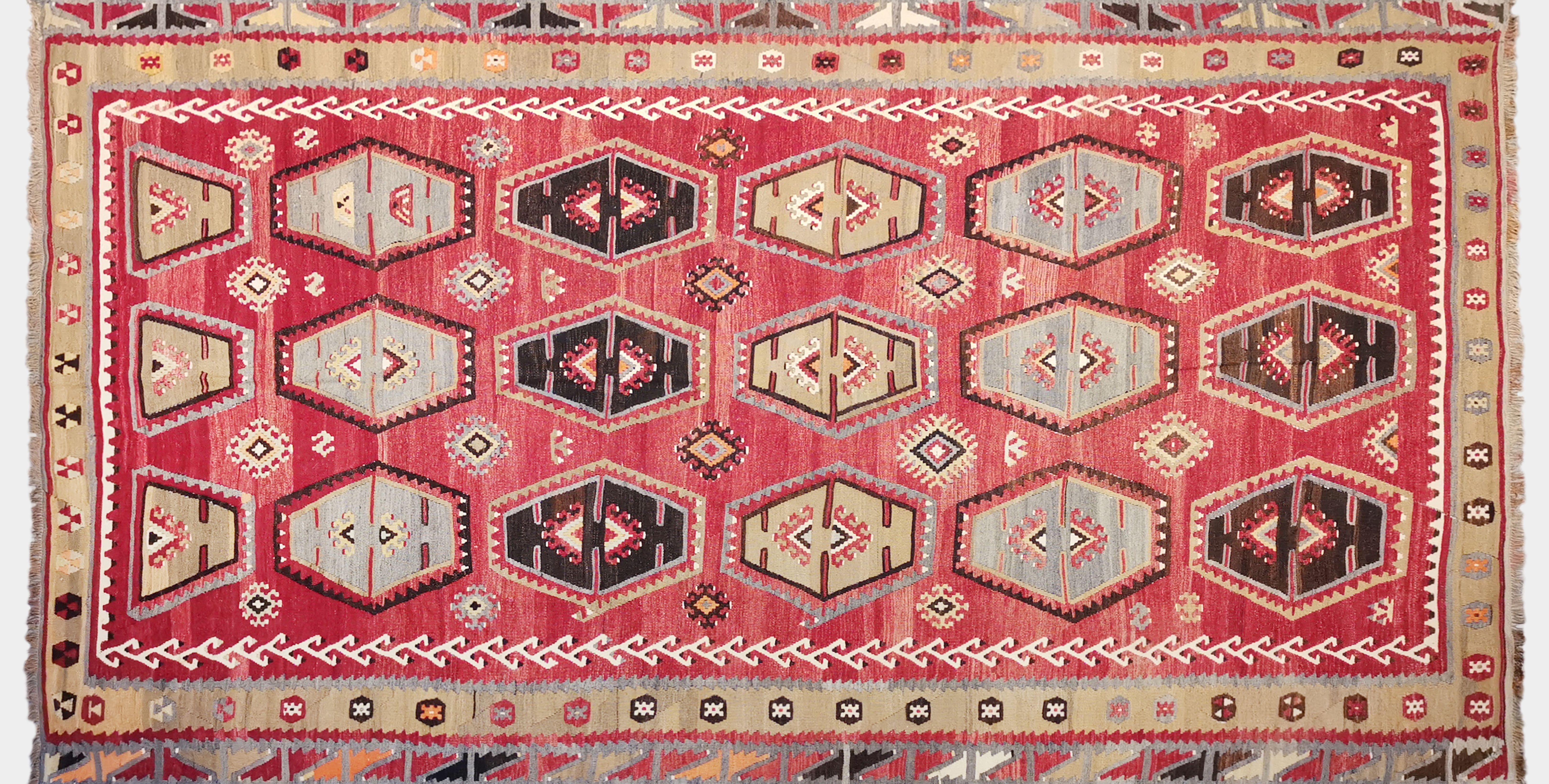 Laine rouge à décor géométrique, 334x164 cm. Provenance: collect...