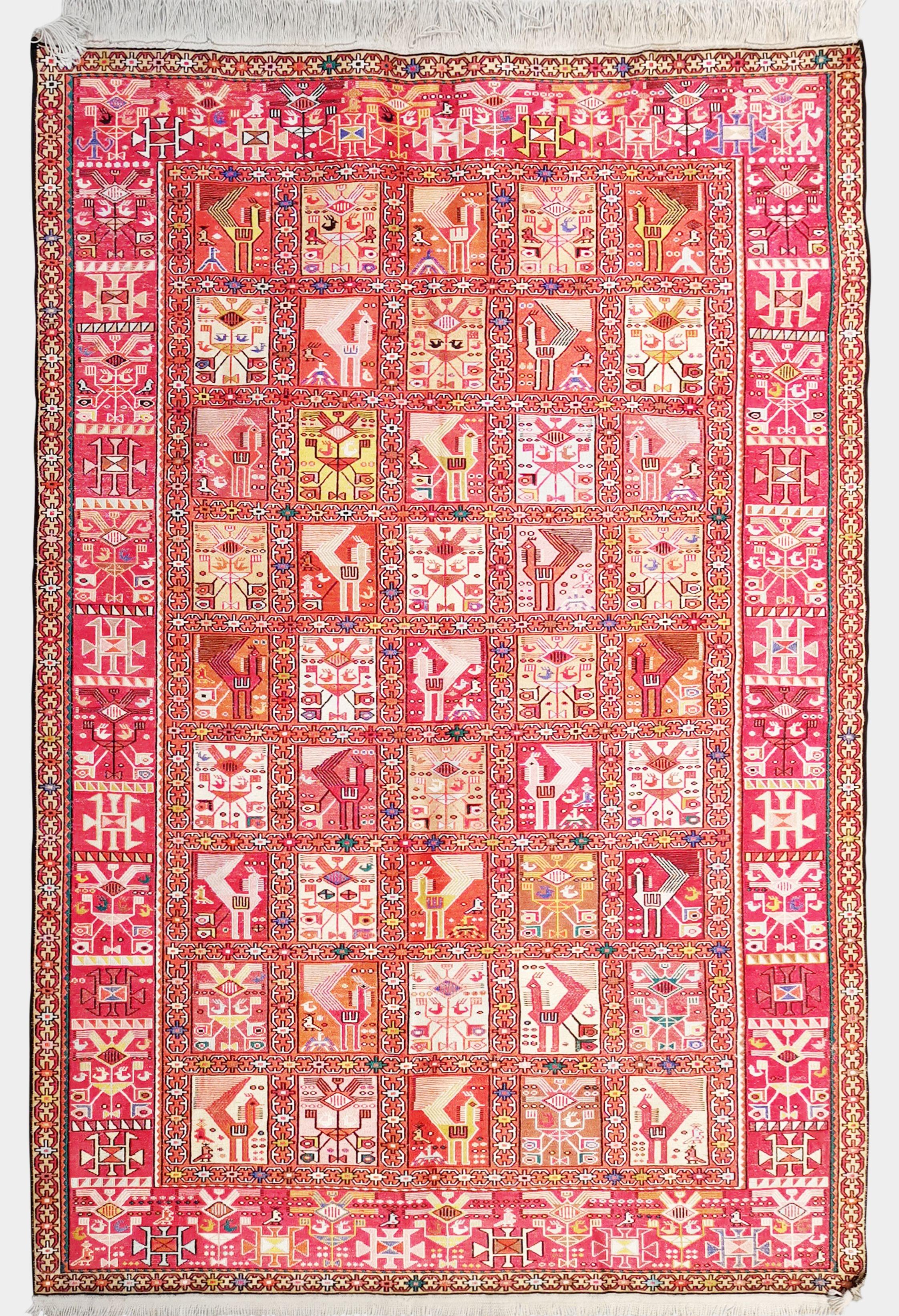 Laine à motifs stylisés d'animaux dans des carreaux, 191x127 cm et 190x125 cm