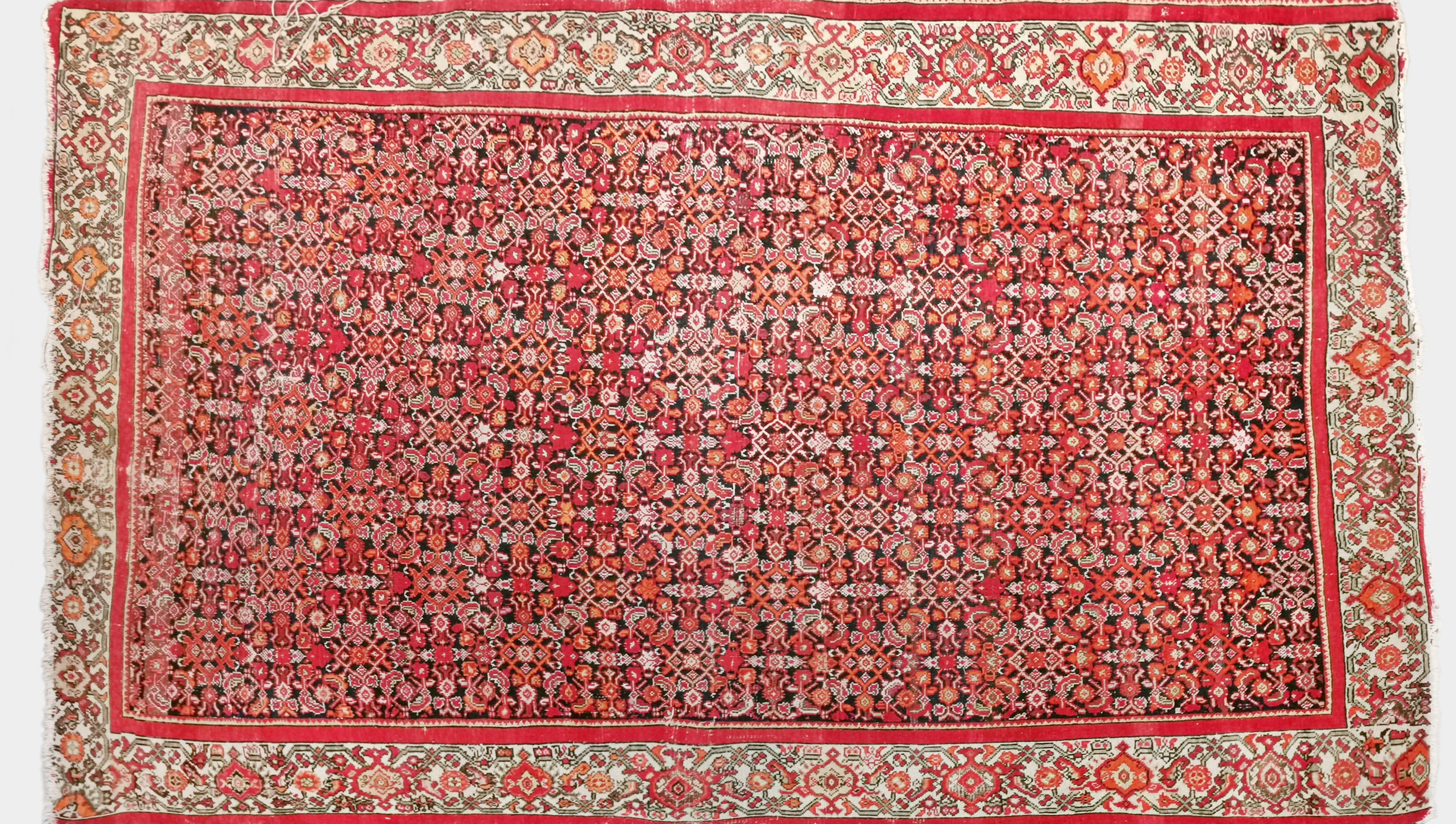 Laine rouge à décor géométrique, 334x164 cm. Provenance: collect...